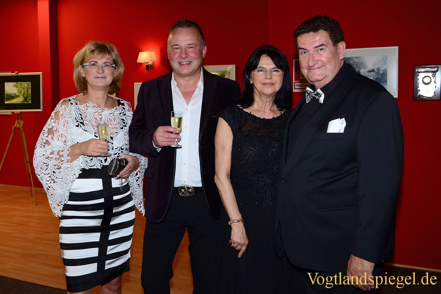 Das Ehepaar Trautlofft (r.) empfängt alle Gäste des Abends persönlich – hier Heike Rahming und Uwe Feustel.