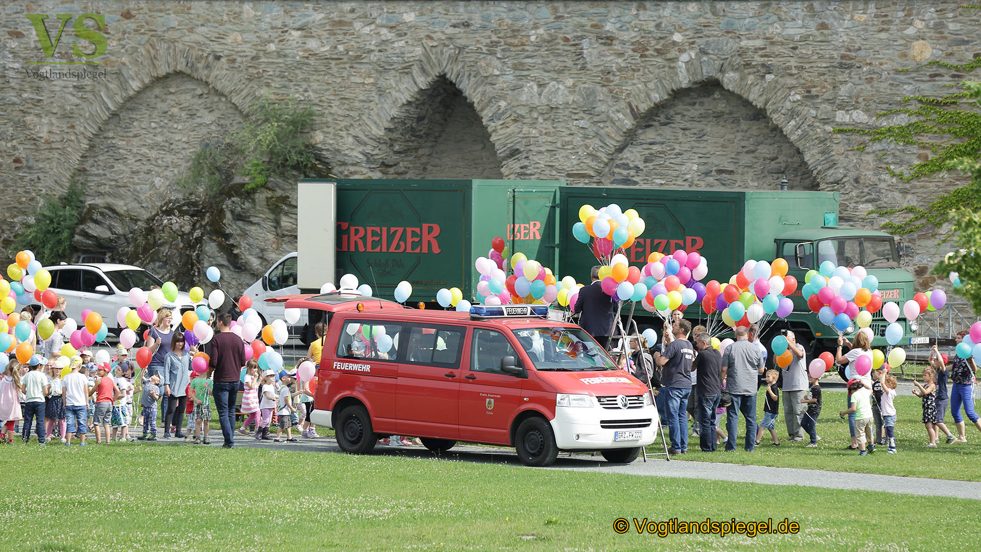 1000 Luftballons steigen über der Stadt Greiz auf