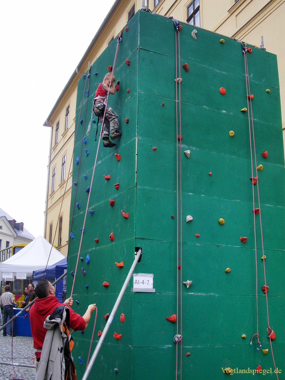 Der Kletterturm lädt auf der Kirchenmeile ein.