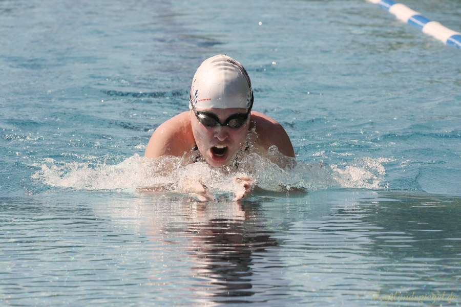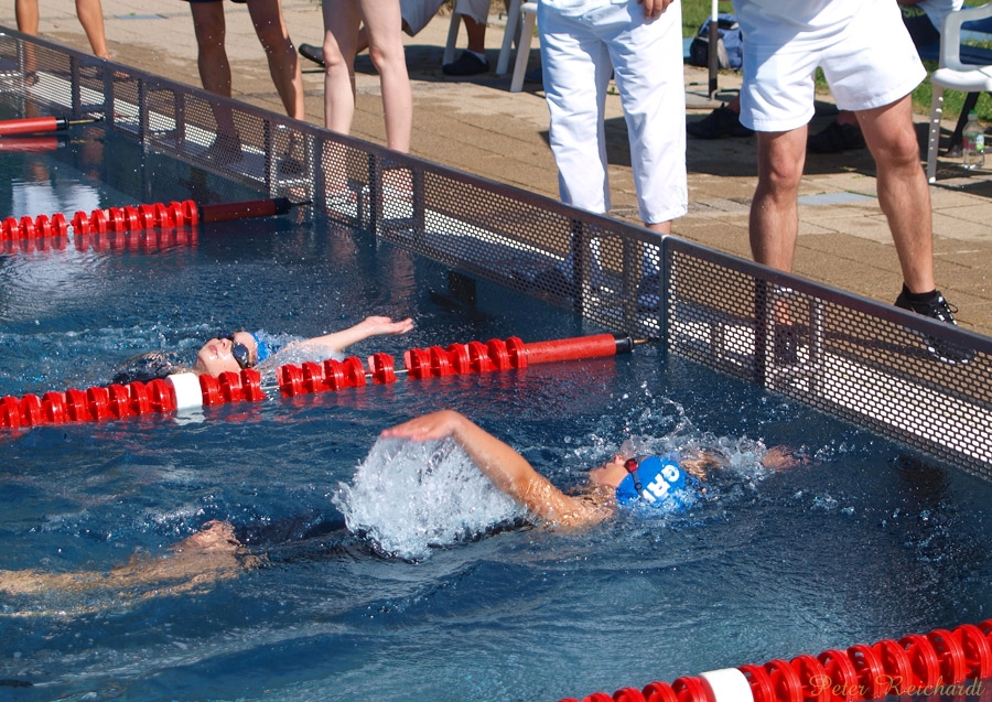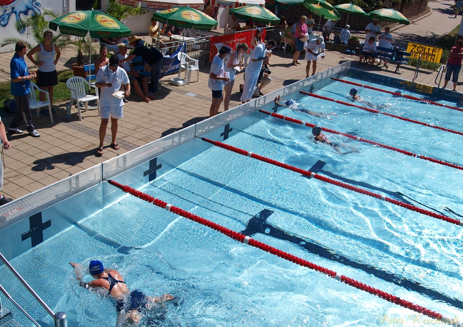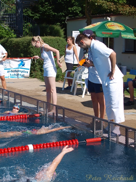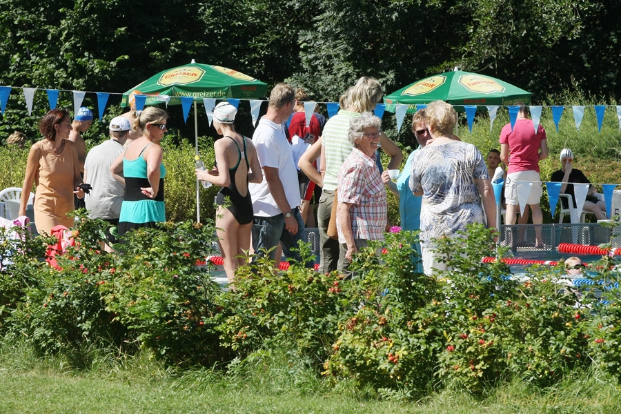 Das Einschwimmen begann um 9 Uhr, der Wettkampf startete um 10 Uhr. Am bisher heißesten Tag des Jahres gaben die Schwimmer alles und zogen tapfer ihre Bahnen.