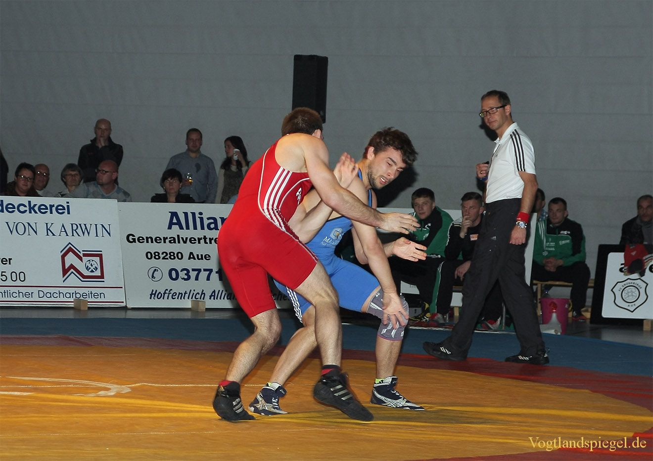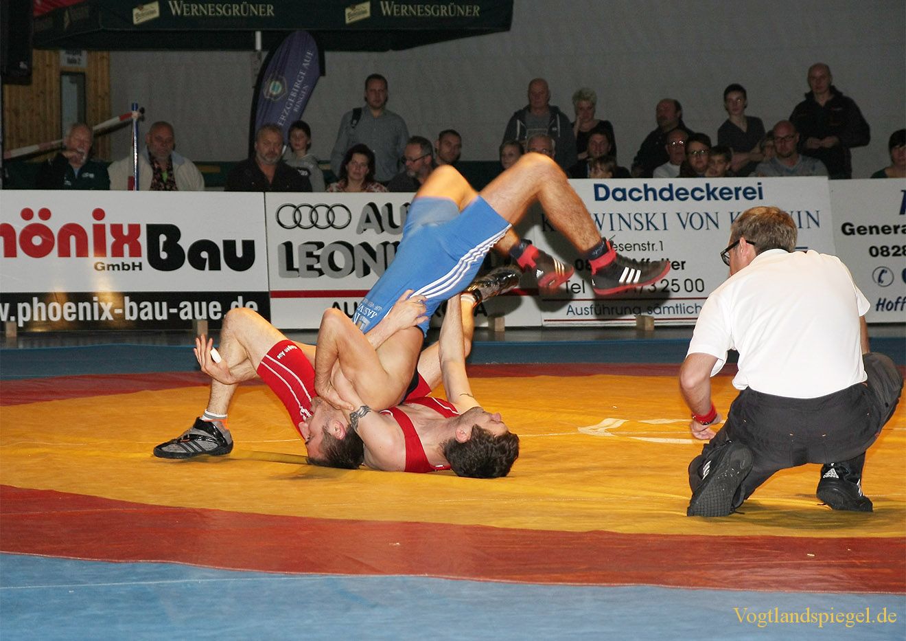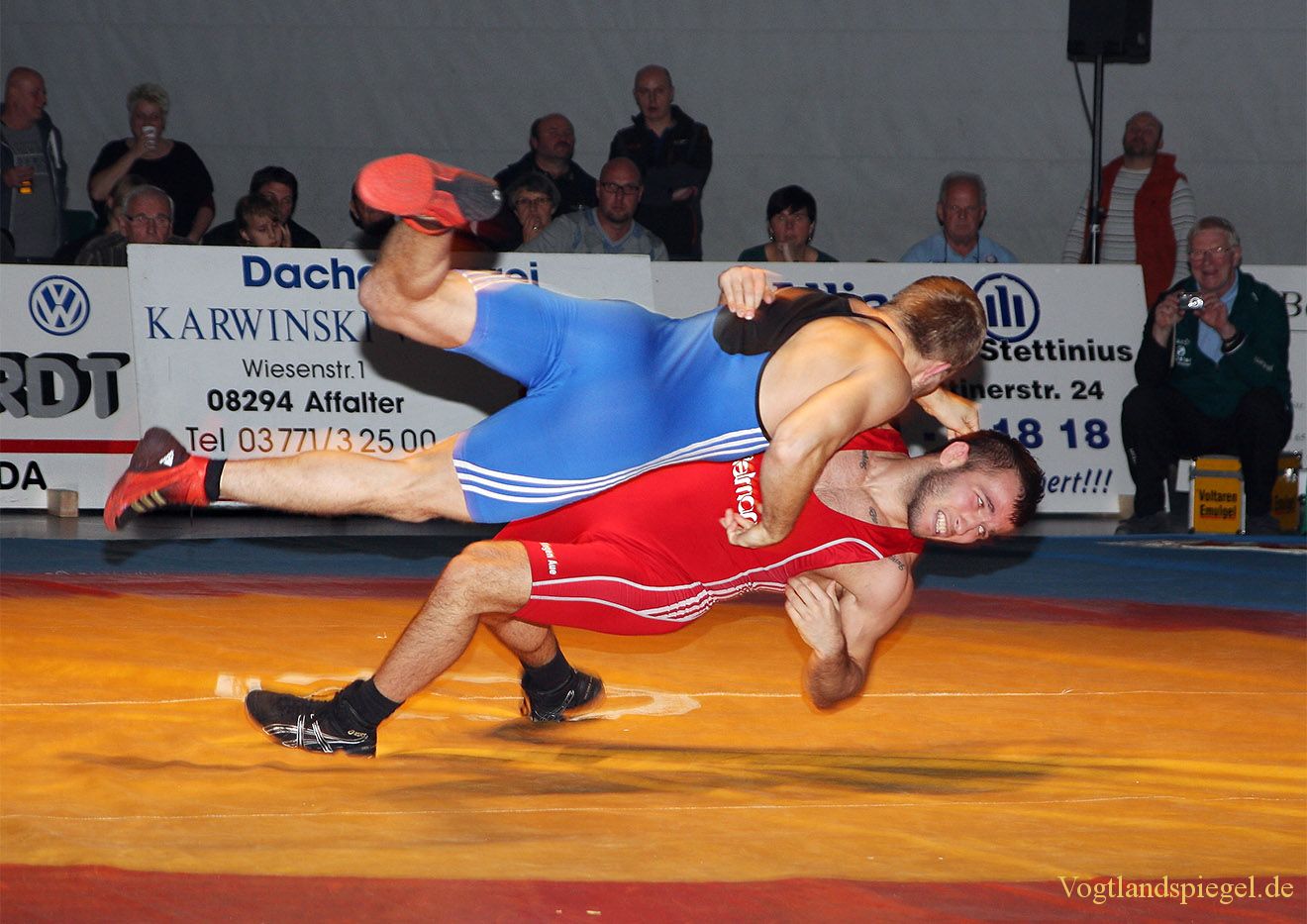 61kg Freistil Pierre Vierling, FC Erzgebirge Aue gegen Vladimir Codreanu (blaues Trikot), RSV Rotation Greiz 0:4-TÜ-0:16-01:48