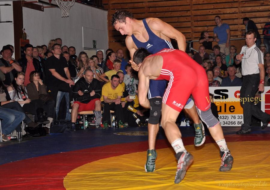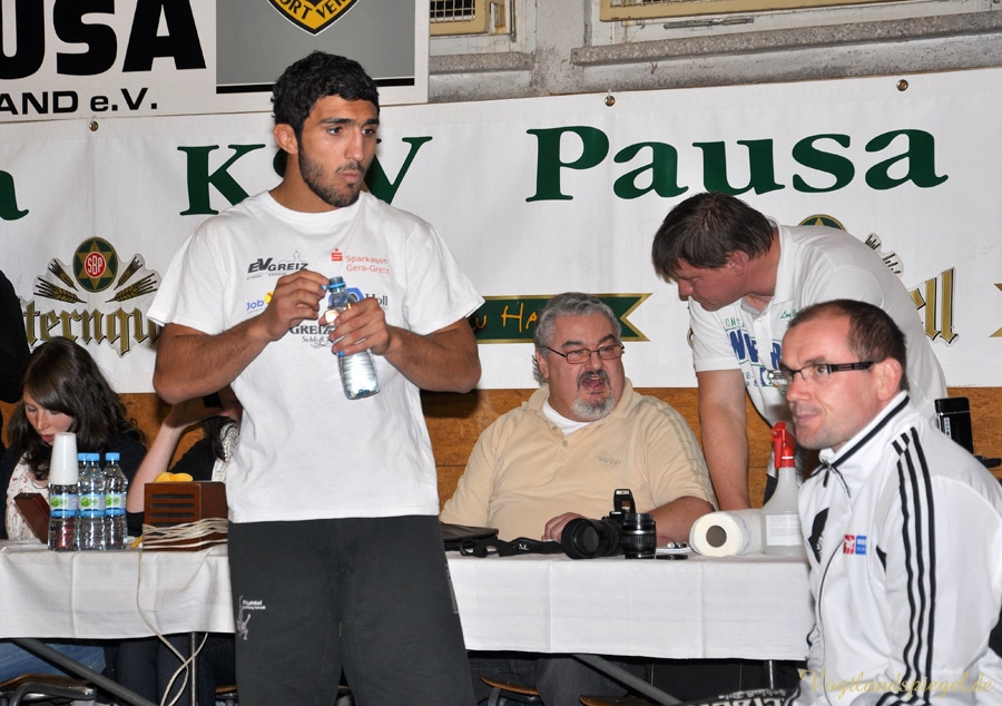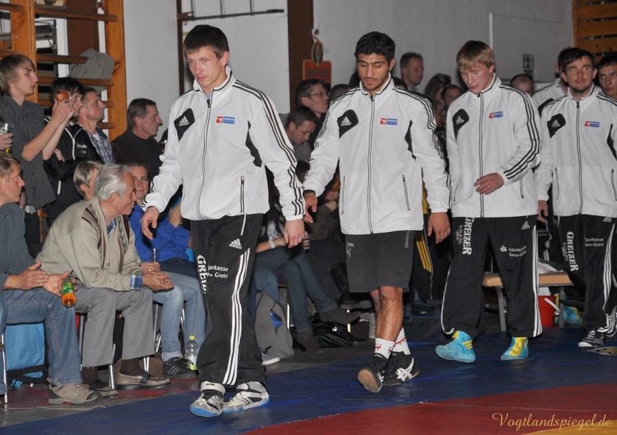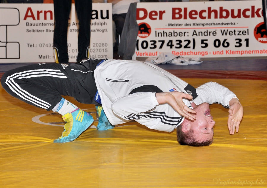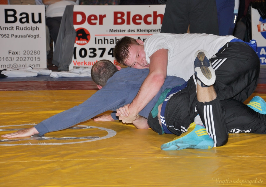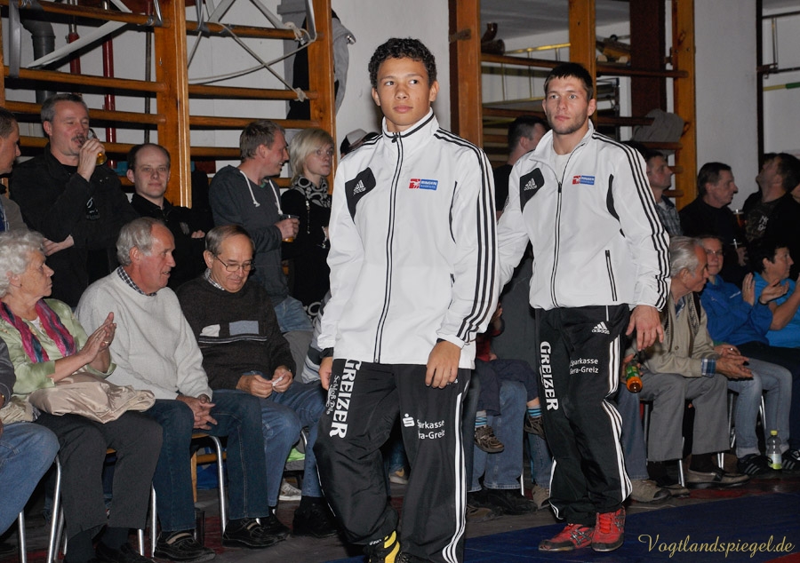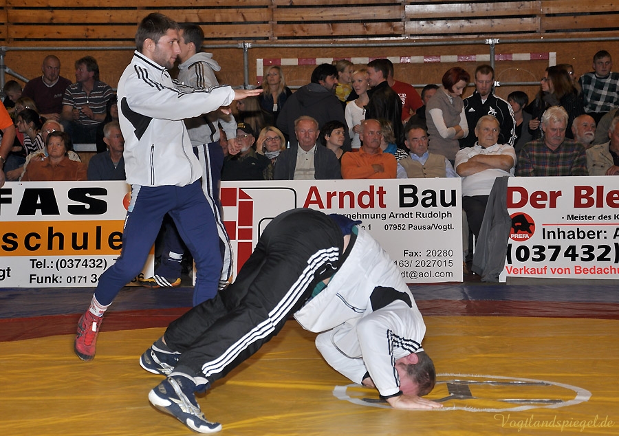 PAUSA. Kurz vor Ende der Hinrunde trafen am Sonnabendabend in der 2. Bundesliga die WKG Pausa/Plauen und der RSV Rotation Greiz in der Schulturnhalle Pausa aufeinander. Zu dem Ausfall Edgar Babayans kam auch noch der von Radoslaw Horbik hinzu, der sich bei einem Trainingskampf verletzte. Auch Michael Dengler meldete sich verletzt – zu allem Übel verletzte sich Radoslaw Kisiel beim Vogtland-Derby und mit ihm ein weiterer Leistungsträger. So musste die Mannschaft kurzerhand umgestaltet werden. Leider verlor nach der verletzungsbedingten Niederlage von Kisiel der Kampf etwas an Spannung – doch war beim gesamten vor einer großen Zuschauerzahl das Niveau sehr hoch. Durch diese Niederlage von 13:24 fiel der RSV wieder auf Platz sieben in der Tabelle der 2. Bundesliga Nord zurück.