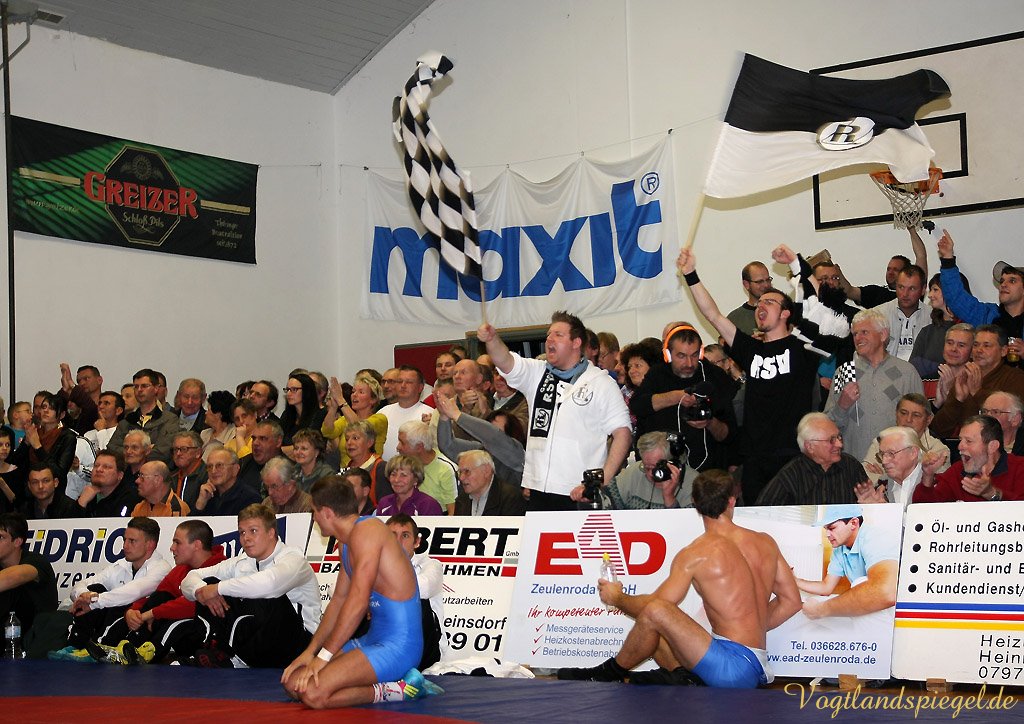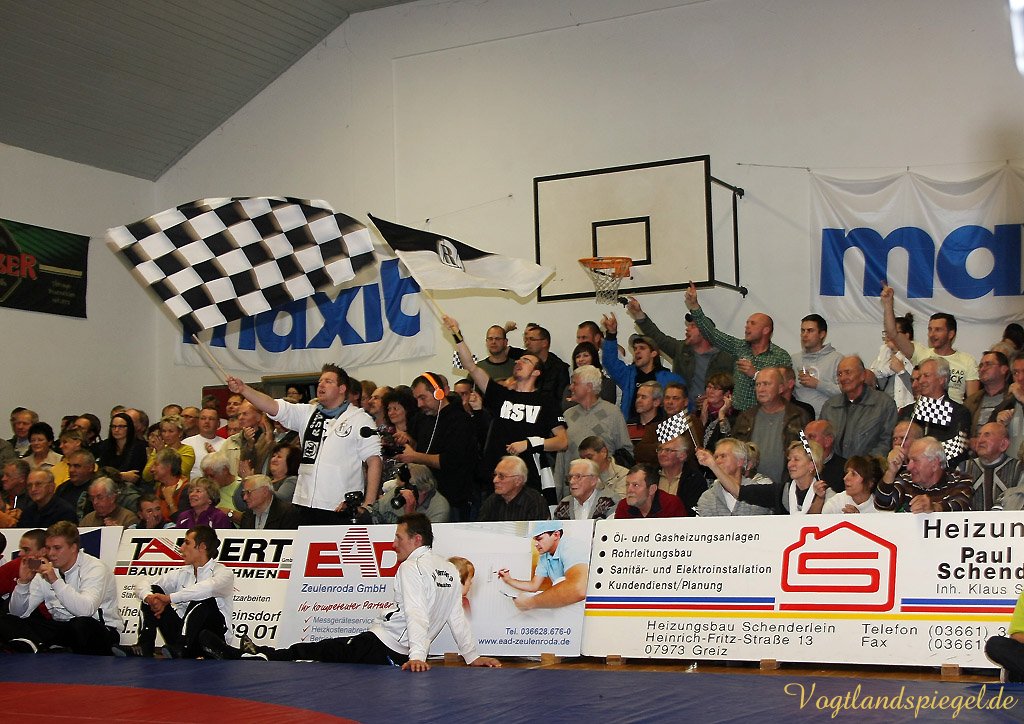 GREIZ. Zum Vogtlandderby in der 2.Bundesliga der Ringer reiste der langjährige Konkurrent AV Germania Markneukirchen in der Greizer Jahnturnhalle an. Gerade die Vogtlandderbys standen in den letzten Jahren unter besonderen Gesetzen. Diesmal waren leider nicht ganz so viele Fans wie in den Vorjahren aus dem südlichsten Zipfel Sachsens in die Perle des Vogtlandes gereist. Hauptgrund dafür waren wohl die doch begrenzten Erfolgsaussichten der Sachsen beim ungeschlagenen Tabellenführer in Greiz. Der Zuschauerzuspruch in der Jahnturnhalle mit ihrem speziellen Flair war trotzdem hervorragend. Lange ging es äußerst spannend zu und sah nicht nach einem klaren Erfolg der Gastgeber aus. Vor dem Kampf wurde die Greizer Nachwuchsmannschaft für den Staffelsieg in der Jugendliga Mitteldeutschland geehrt.