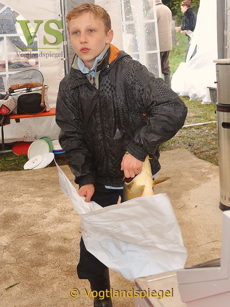 Viele Gäste kamen zum 2. Fischerfest, das für jeden Geschmack etwas bot. Lukas ist fleißig beim Verkauf.