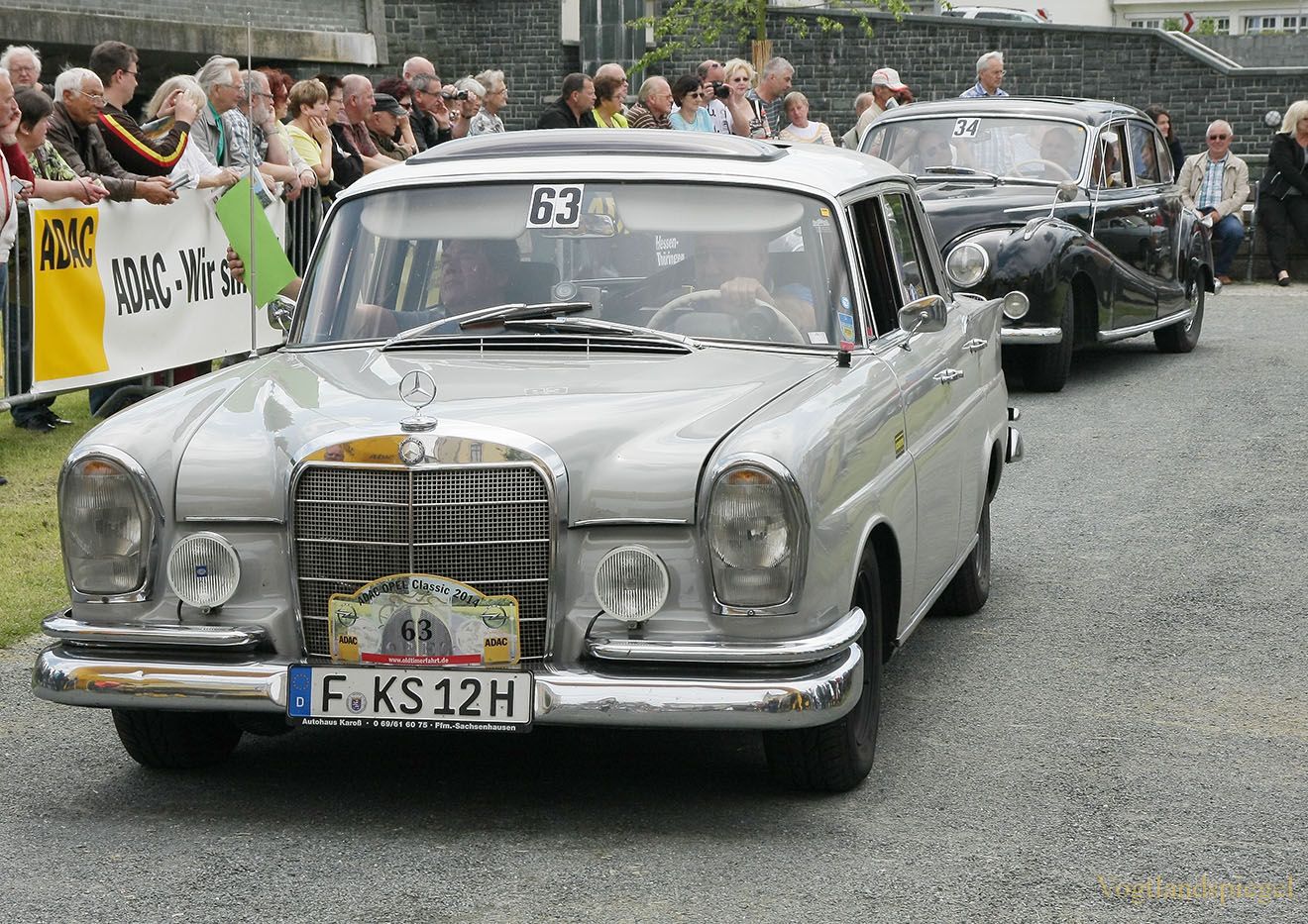 Die Nr. 63: Jürgen Karoß und Klaus Fuchs in einem Mercedes- Benz 220 SE Rallye Flosse, Baujahr 1964.