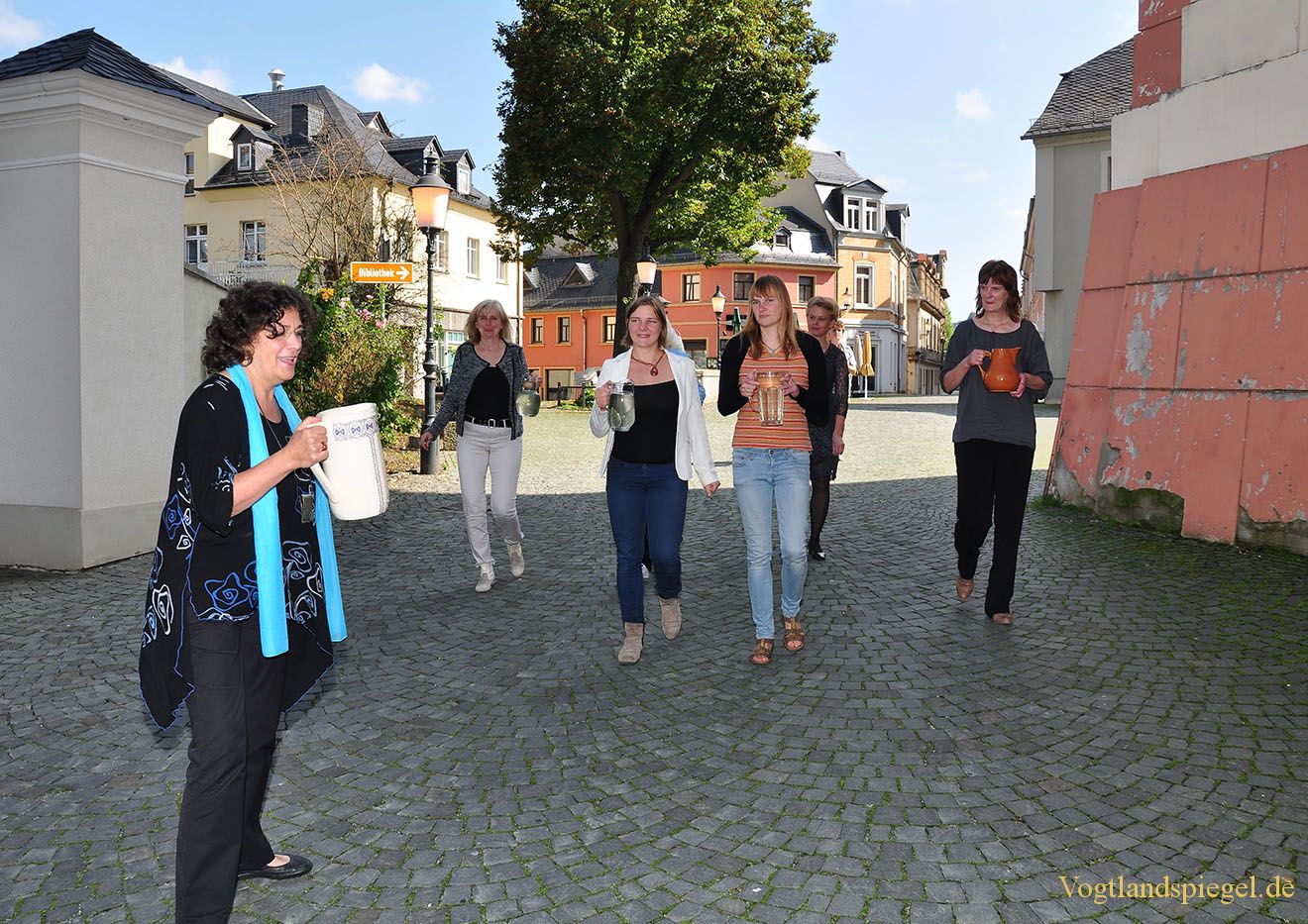 Mit geschöpftem Wasser und Mut kehren die Frauen in die Kirche zurück.