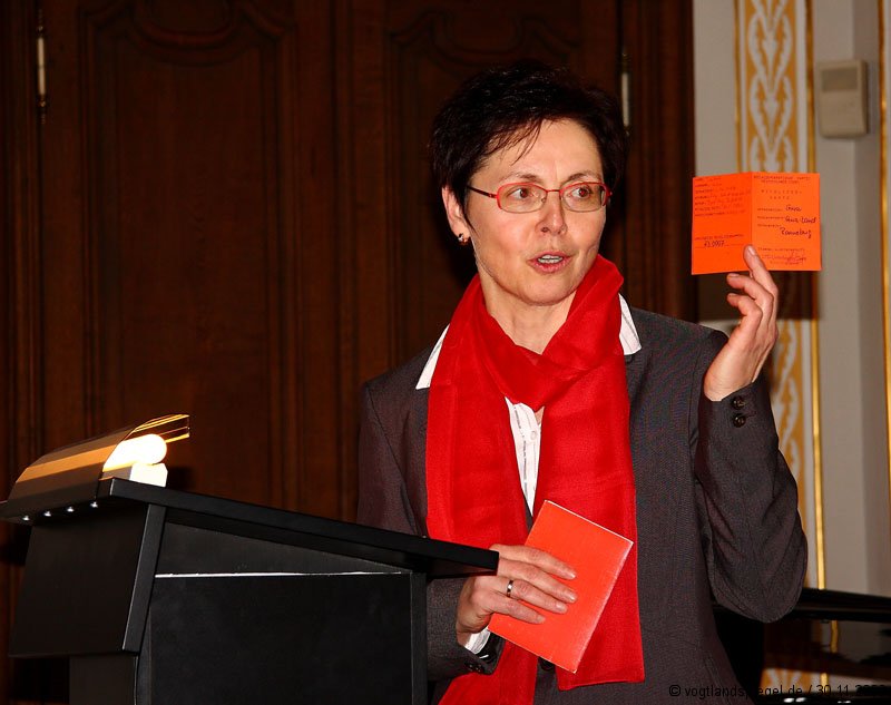 Die frischgebackene Thüringer Sozialministerin hatte sogar ihr erstes Parteibuch einen roter Zettel und die 1. Kreistagsliste aus dem Jahr 1989 mitgebracht. Wolfgang Seifert, der seinerzeit über das Neue Forum in die SPD kam, und als Moderator der Veranstaltung fungierte, hatte vier Zeitzeugen eingeladen, die an dieser friedlichen Geschichte mitgeschrieben haben: Pfarrer i. R. Klaus Böhme, Günter Kramer, Harald Seidel und Karsten Schaarschmidt. Wenn Zeitzeugen die besten Geschichtslehrer sind, dann gaben diese durch die unterschiedliche Betrachtungsweisen eine besondere Lektion in punkto Historie. Pfarrer Böhme erinnerte sich vor allem an die Stimmung und Atmosphäre vor zwanzig Jahren und das Gefühl, wenn die Kirche plötzlich voll ist.