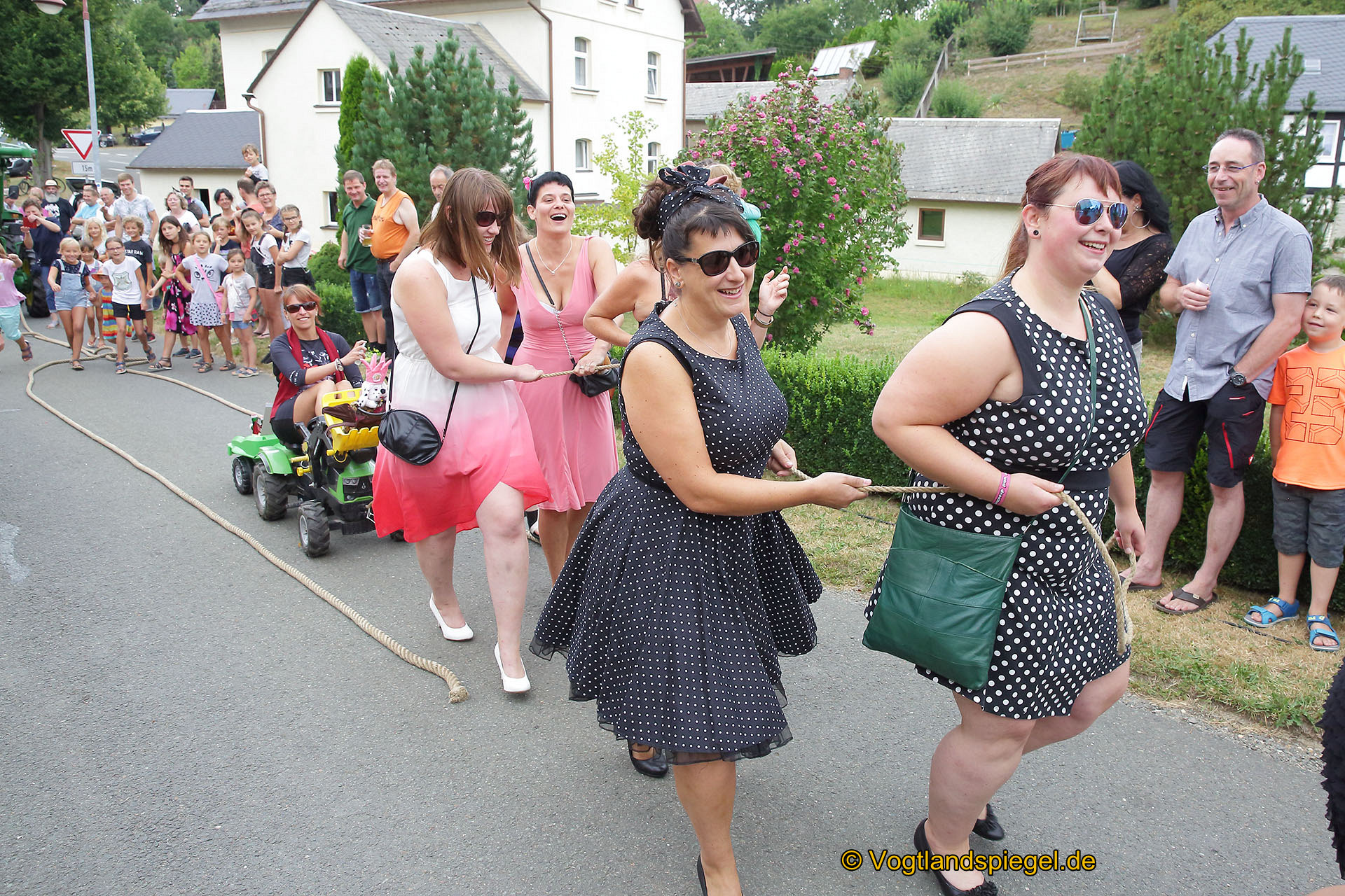 Im Rahmen des Dorffestes in Nitschareuth fand das 21. Traktorziehen statt. Hauchdünn siegte der Rotation Schuppen vor den Neugernsdorfern. Einen glamourösen Auftritt hatten auch die High Society-Girls des Ortes. hier: Nitschareuther High Society Girls – 66,66m