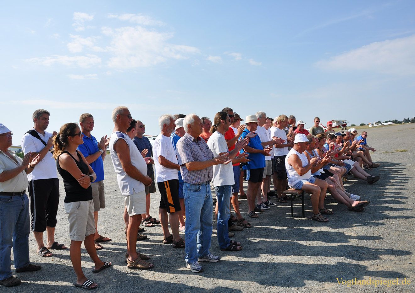 Applaus der anwesenden Piloten für die Fördermittelübergabe.