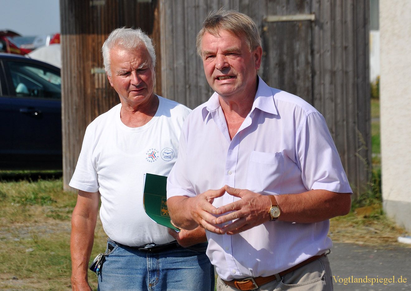 Ortsteilbürgermeister Jürgen Frantz (r.) geht auf die lange währende Tradition des Wettbewerbs ein.