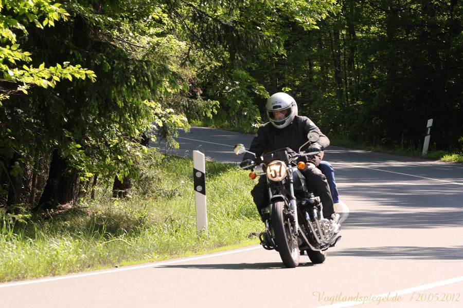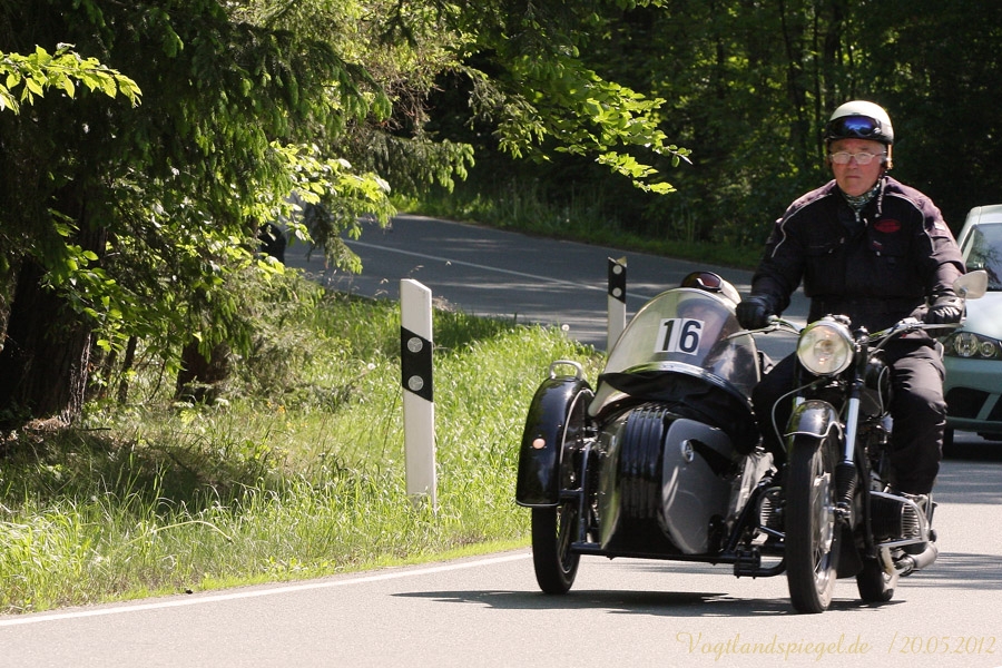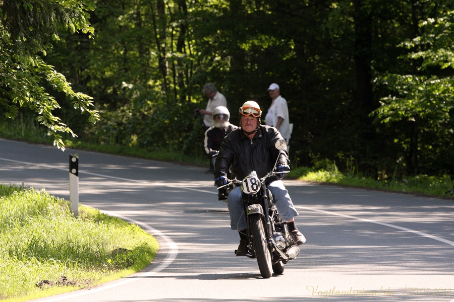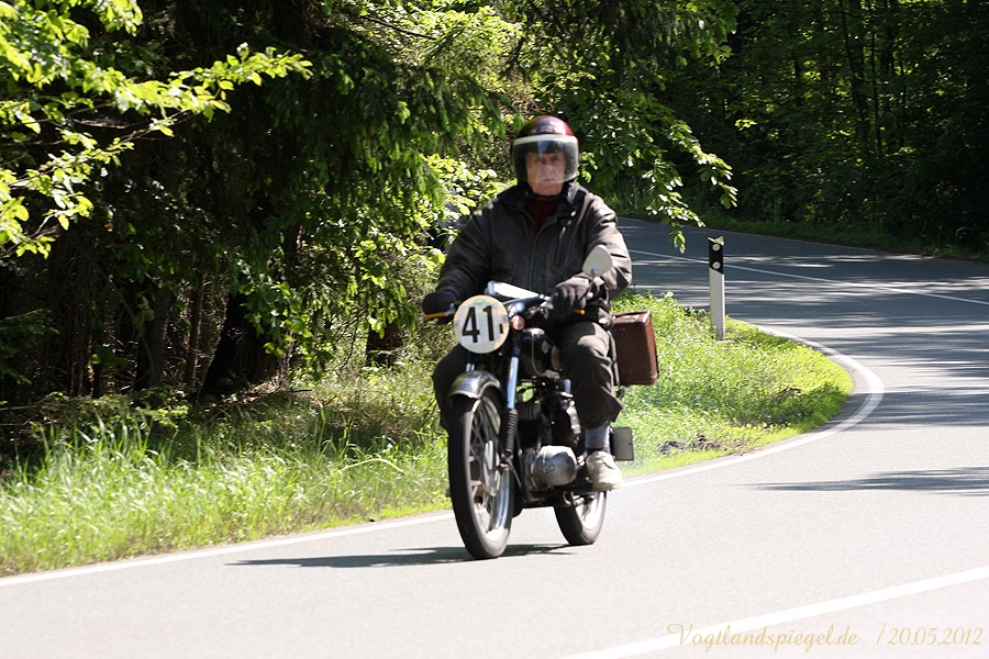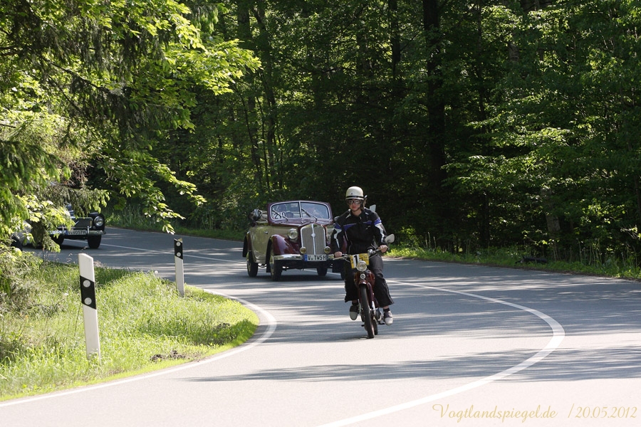 ADAC Oldtimerausfahrt rund um die Park- und Schlossstadt Greiz des Historischen Rennsportclub Greiz-Neumühle im ADAC machte Zwischenstopp auf dem Greizer Markt Oldtimerausfahrt rund um die Park- und Schlossstadt Greiz des Historischen Rennsportclub Greiz-Neumühle im ADAC machte Zwischenstopp auf dem Greizer MarktGREIZ. Nicht nur in und um Eisenach waren an diesem Wochenende Oldtimer unterwegs. Nein, auch in und um die Park- und Schlossstadt Greiz waren am vergangenen Sonntag wunderschöne Oldtimer, seien es nun PKW oder Motorrad, auf den Straßen zu sehen und erstaunten so manchen der Straßenpassanten. Hatte doch der Historische Rennsportclub Greiz-Neumühle im ADAC zu seiner 28. ADAC Oldtimerausfahrt rund um die Park- und Schlossstadt Greiz nach Neumühle/Elster eingeladen. Mei Vugtland iss so wunnerschie . . . – heißt es in einem Heimatlied aus der Region. Und davon schwärmten die rund 150 Teilnehmer dieser Oldtimerausfahrt in den Frühling, die sich auf die Tour von Neumühle/Elster über Greiz, Zeulenroda, rund um die Zeulenrodaer Talsperre und weiter über Pöllwitz, Dobia, die Steinermühle, Elsterberg, zurück nach Greiz und dann zum Ziel in Neumühle/Elster begeben hatten. Wie sagte doch Thomas Roth, der Vorsitzende des HRC Greiz-Neumühle e.V. in seiner Begrüßung: Ich freue mich darüber, dass sich Teilnehmer aus den verschiedensten Teilen Deutschlands auch zur diesjährigen Ausfahrt den Weg nach Neumühle gefunden haben. Mit Sicherheit bietet ihnen die schöne Umgebung von Neumühle oder die Park- und Schlossstadt Greiz die Möglichkeit, um mit ihren geliebten Oldtimern auch diesen Teil Deutschlands zu erkunden, neue Kontakte zu knüpfen oder Erfahrungen auszutauschen. Davon waren die Teilnehmer, die in 10 Wertungsklassen starteten, so begeistert. Kaiserwetter und strahlender Sonnenschein auf der Fahrt, dazu so begeistert mitgehende Zuschauer und Passanten an den Straßen, gute Gespräche untereinander und manch guter Ratschlag, den man im Gespräch erhielt – das macht wohl die Faszination dieser ADAC Oldtimerausfahrten aus und so beliebt. Natürlich hatte sich die gute Stube von Greiz, der Greizer Markt, besonders herausgeputzt. Auch viele Greizer ließen sich das Spektakel der Wagen- und Motorradauffahrt nicht entgehen, war doch hier ein Zwischenstopp bei dieser ADAC Oldtimerausfahrt vorgesehen. Ulrich Zschegner in Vertretung des Greizer Bürgermeisters begrüßte alle Teilnehmer mit Handschlag, wünschte ihnen einen angenehmen Aufenthalt in der Region und überreichte jedem Teilnehmer als kleines Andenken an die 28. ADAC Oldtimerausfahrt rund um die Park- und Schlossstadt Greiz den diesjährigen Stadttaler, der in diesem Jahr das Ulf-Merbold-Gymnasium zeigt. Wertungsprüfungen, insgesamt fünf, mussten natürlich ebenso absolviert werden wie die Fahrtstrecke, und das nach Möglichkeit fehlerlos. Ein Spurbrett sauber und ordnungsgemäß befahren, einen Bremspunkt genau treffen, da hieß es schon in Neumühle/Elster Konzentration und Augen auf. Einen genauen Abstand zur Bordsteinkante anfahren und einen bestimmten Frontabstand vor einem Hindernis punktgenau erreichen, da gehörte auf dem Greizer Markt eine ganze Menge Geschicklichkeit dazu. Es waren aber auch tolle Autos, vom PKW bis zum Kleinlaster, und Motorräder zu sehen. Ja, selbst Dreiradfahrzeuge waren dabei und ließen manchen staunend blicken. Eine tolle Verbindung von Weltmuseumstag und gelebter Historie. Haben die Oldtimerfreunde doch einen nicht unerheblichen Anteil bei der Bewahrung und Erhaltung musealer Objekte aus der jüngeren Geschichte unseres Landes sowie Europas und tragen damit auch am motorisierten Geschichtsbild unserer Epoche bei. Natürlich wurden die Besten in den einzelnen Fahrtklassen mit entsprechenden Pokalen geehrt. Deren Aufzählung würde allerdings hier zu weit führen und den Rahmen sprengen, doch einige Sonderpreise dieser 28. ADAC Oldtimerausfahrt rund um die Park- und Schlossstadt Greiz muss man wohl nennen. So ist der älteste Teilnehmer mit 81 Jahren, Wolfgang Sell, im März 1931 geboren und mit seinem Motorrad aus Eisenach angereist. Der jüngste Teilnehmer mit 17 Jahren, Florian Walter, wurde im Juli 1995 geboren und kam aus Linda bei Gera nach Neumühle/Elster. Das älteste Motorrad dieser Oldtimerausfahrt war eine BMW R62 mit dem Baujahr 1929, die Reinhard Schütze aus Hartmannsdorf bei Crossen auf die Strecke brachte. Bei den PKW war es ein Ford A mit dem Baujahr 1929, den Heinrich Scholz aus Reichenbach/V. sein Eigen nennt und in dieser Oldtimerausfahrt vorstellte.