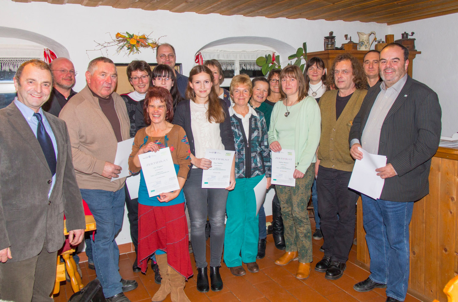 Zum Abschluss des Lehrgangs am 4. Dezember im Bauernmuseum Nitschareuth wurden schließlich alle Teilnehmer mit einem Zertifikat ausgezeichnet. Zur Übergabe waren neben Bürgermeistern auch Werner Westhus, Abteilungsleiter im TLUG, und Kathrin Zschiegner, Leiterin des Umweltamtes im Landratsamt Greiz, gekommen um den neuen Naturführern ihre Glückwünsche auszusprechen.