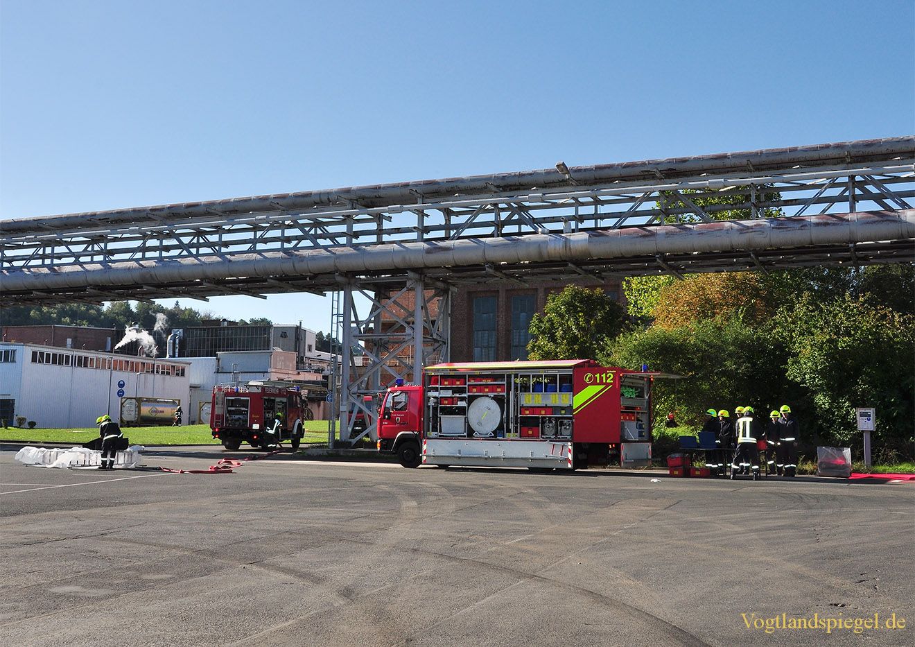 70 Feuerwehrmänner verschiedener Wehren kamen zum Einsatz in den Betrieb AkzoNobel.