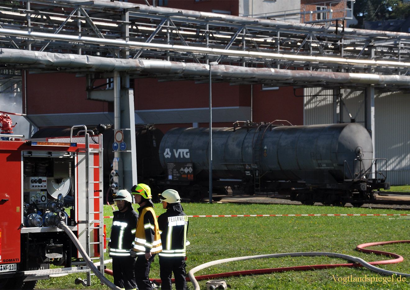 Die Kesselwagen haben beim „Entgleisen“ ein Leck im unteren Bereich bekommen.