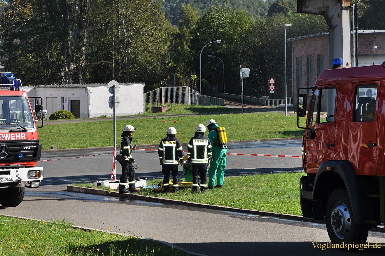 Die Kameraden des Gefahrgutzuges im Einsatz.