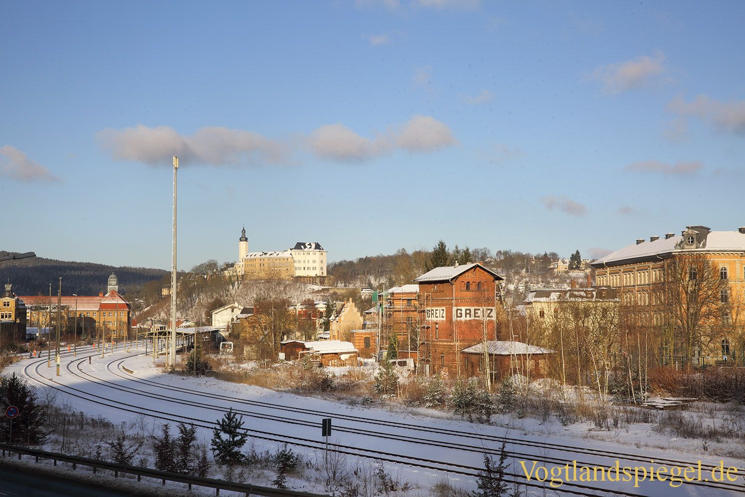 Blick Richtung Greizer Bahnhof und zum Oberen Schloss. Aufnahme von Anfang Januar 2017.