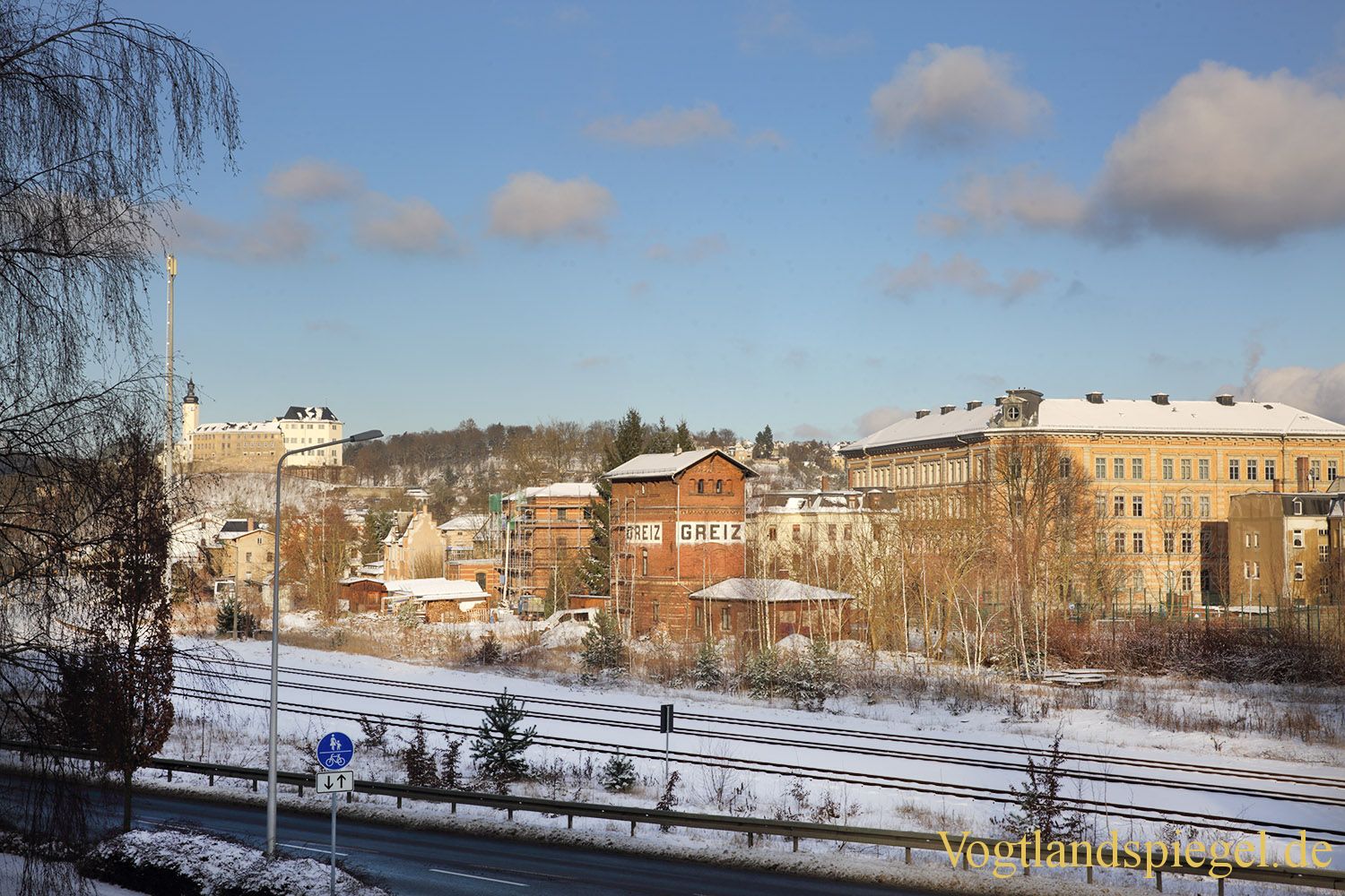 Blick über die Gleise in Richtung Bahnhof und Oberes Schloss. Aufnahme von Anfang Januar 2017.