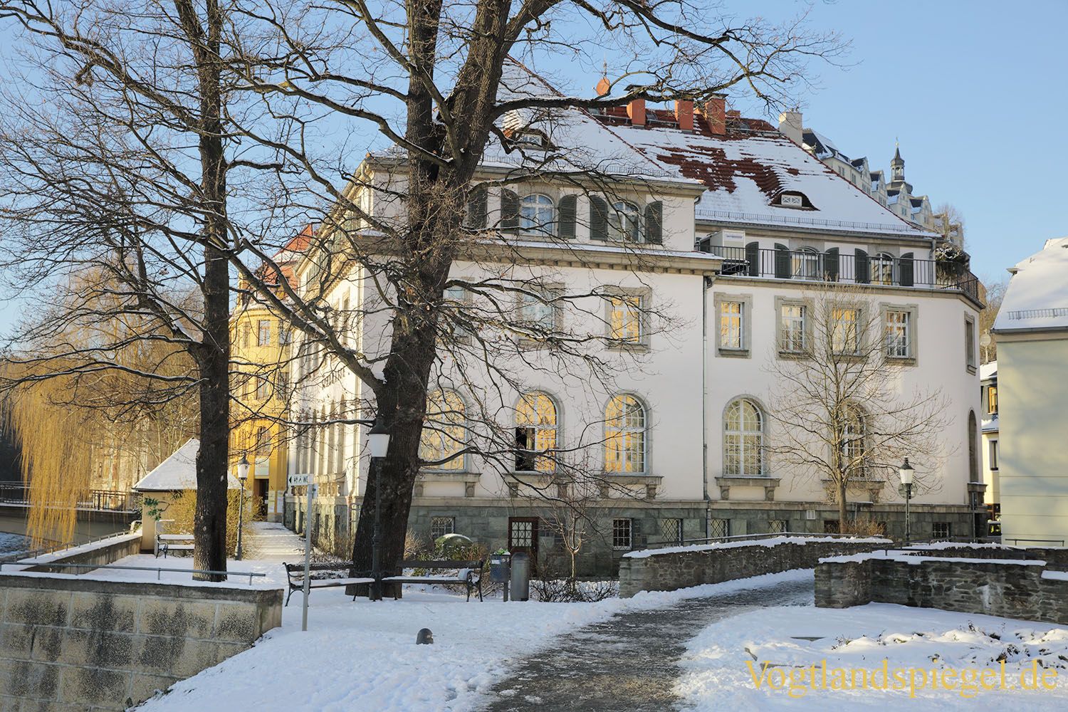 Blick über den Stadtmühlengraben zum Sparkassengebäude. Aufnahme von Anfang Januar 2017.