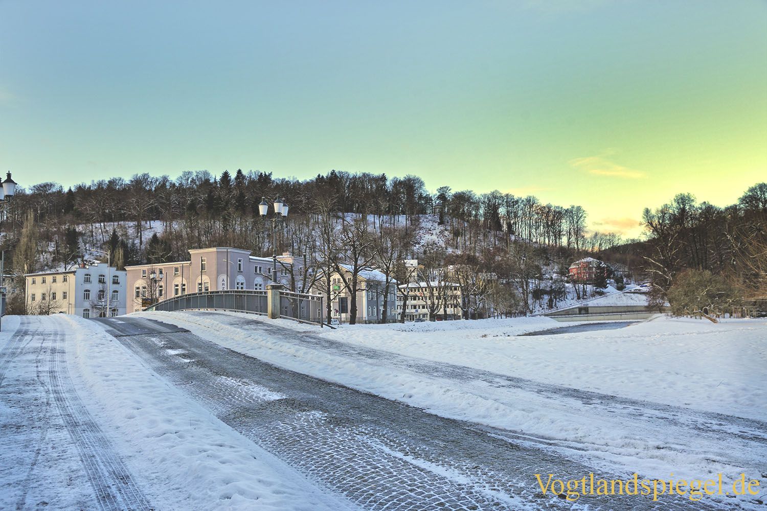 Die Greizer Freiheitsbrücke zeigt sich winterlich. Aufnahme von Mitte Januar 2017.