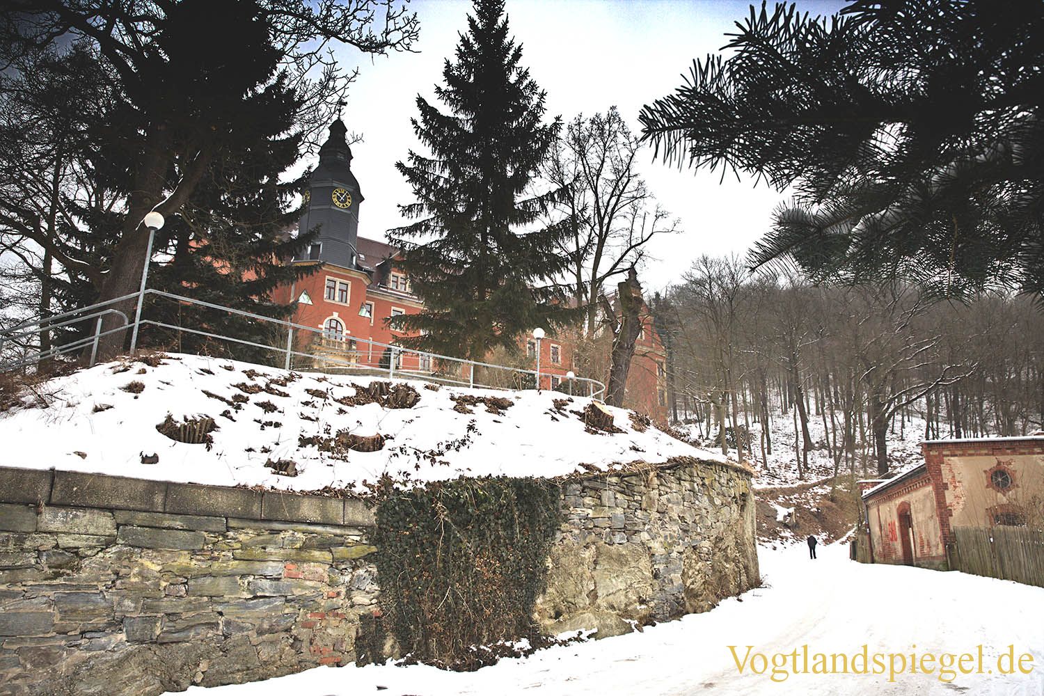 Winterlicher Blick auf das Ernst-und Lina- Arnold-Stift, das Pflegeheim „Anna Seghers“. Aufnahme von Ende Januar 2017.