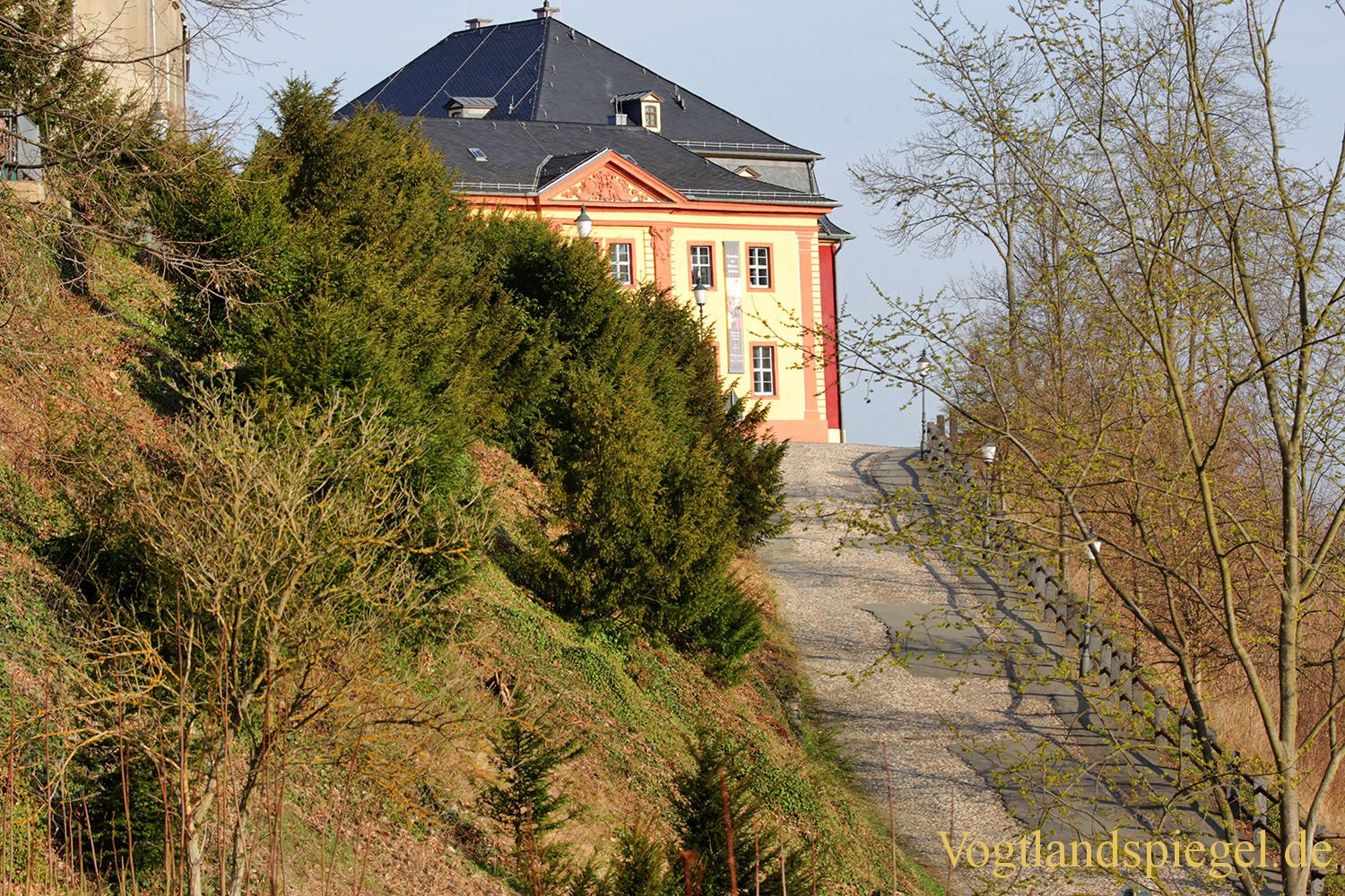 Weg in Richtung Torhaus des Oberen Schlosses. Aufnahme vom 1. April 2017.