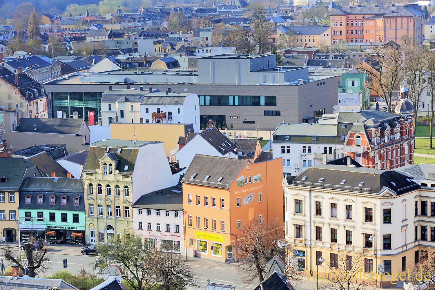Blick auf die Vogtlandhalle Greiz in der Neustadt. Aufnahme vom 1. April 2017.