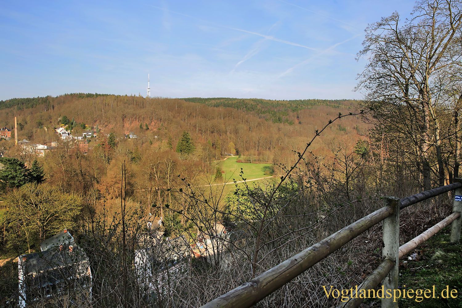 Blick vom Oberen Schloss in den Fürstlich Greizer Park und Richtung Gommla. Aufnahme vom 1. April 2017.