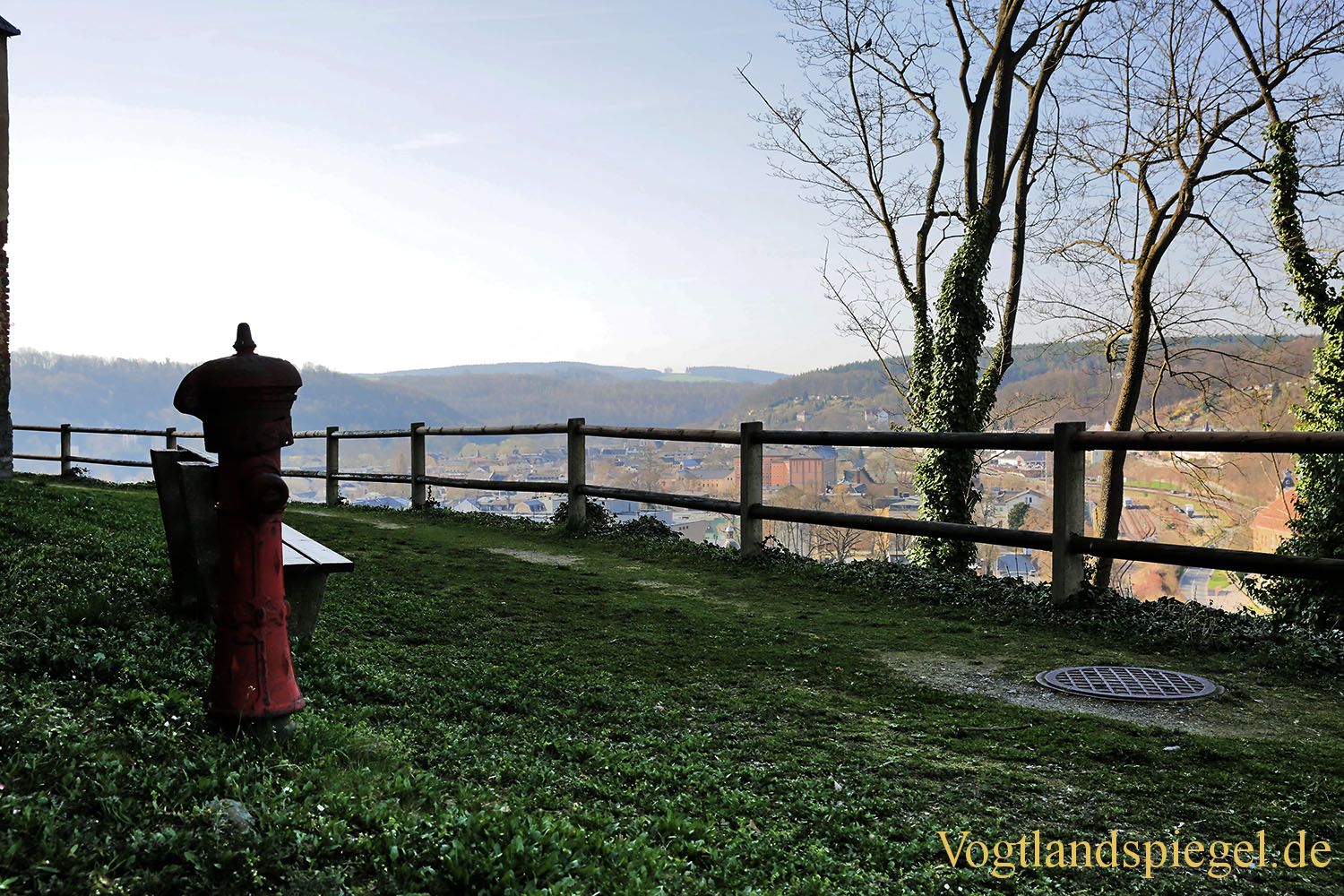 Vom Oberen Schloss hat man einen wunderschönen Blick auf die Stadt Greiz. Aufnahme vom 1. April 2017.