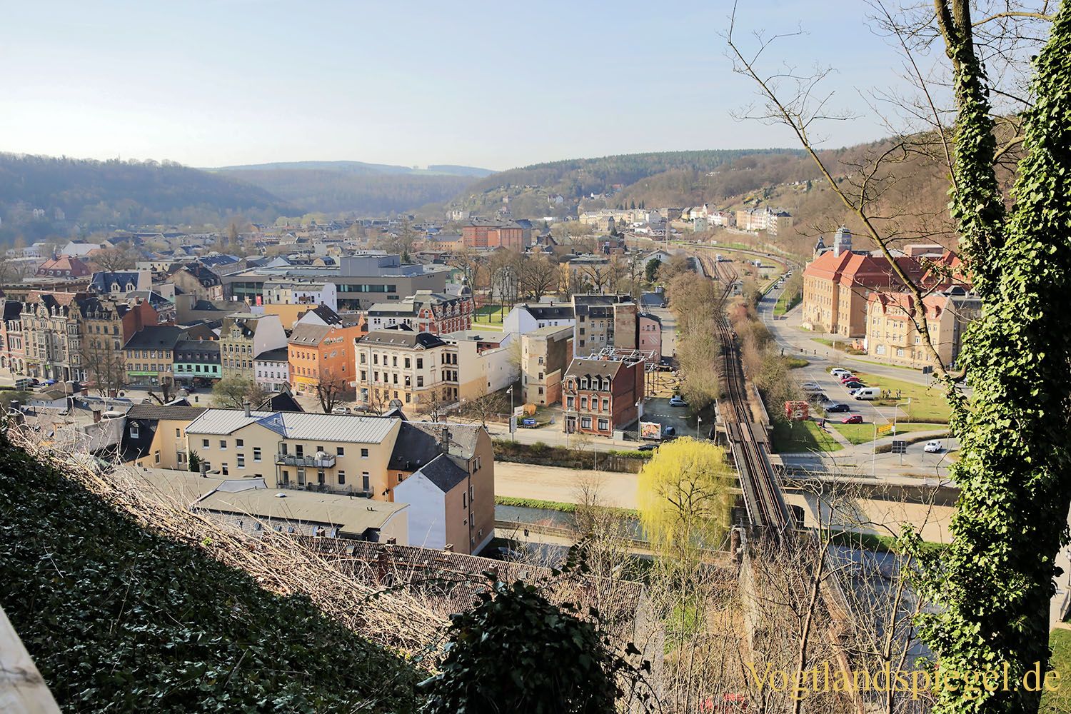 Blick vom Oberen Schloss in Richtung Greizer Neustadt. Aufnahme vom 1. April 2017.