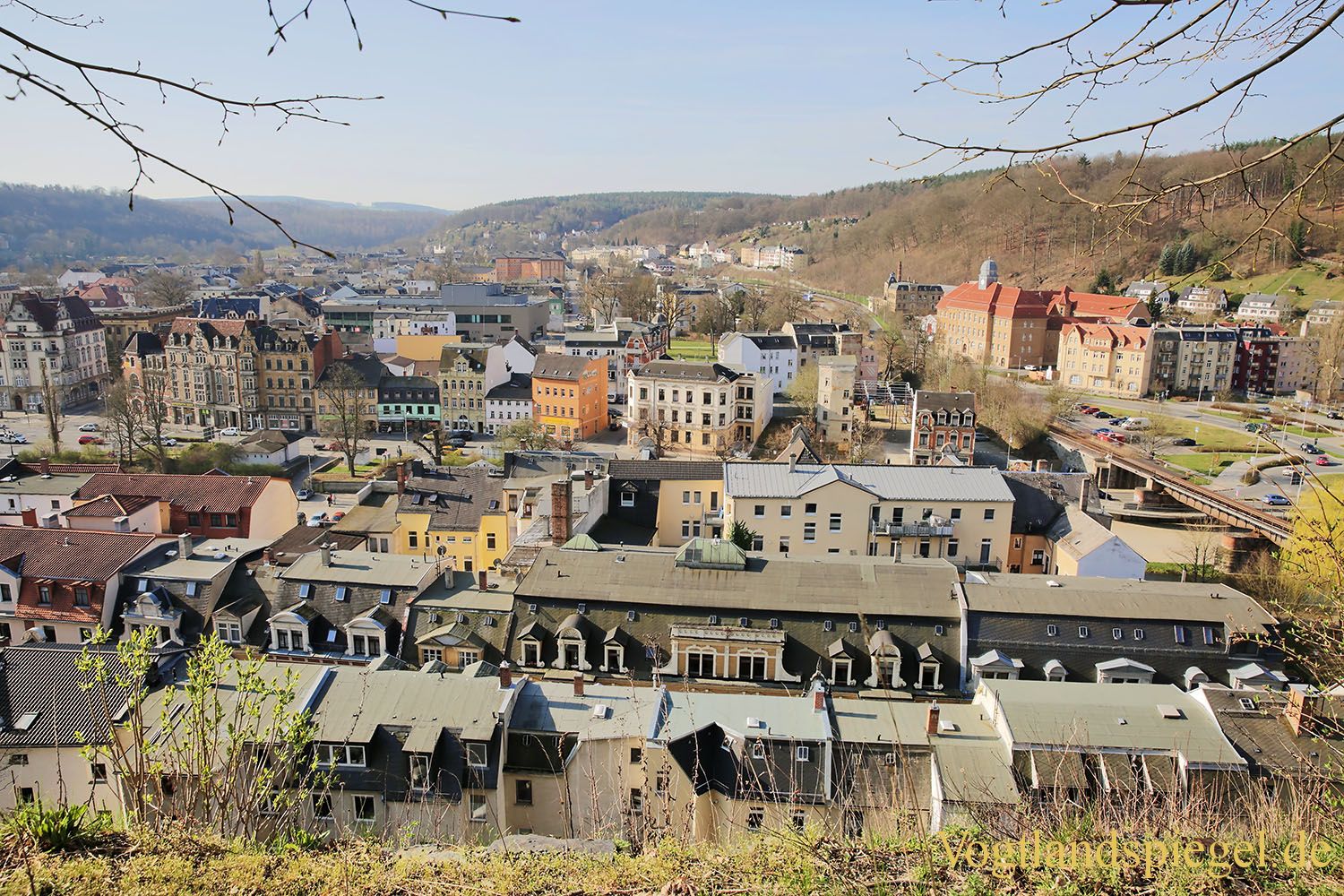 Blick vom Oberen schloss auf die Greizer Neustadt. Aufnahme vom 1. April 2017.