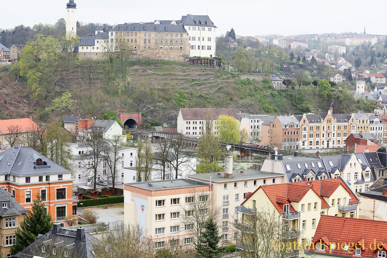 Blick zum Schlossbergtunnel und Oberen Schloss. Aufnahme von Mitte April 2017.