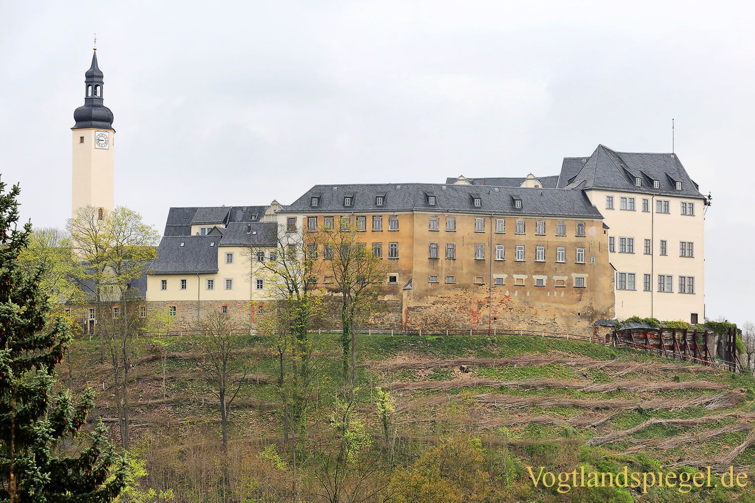 Das Greizer Obere Schloss. Aufnahme von Mitte April 2017.