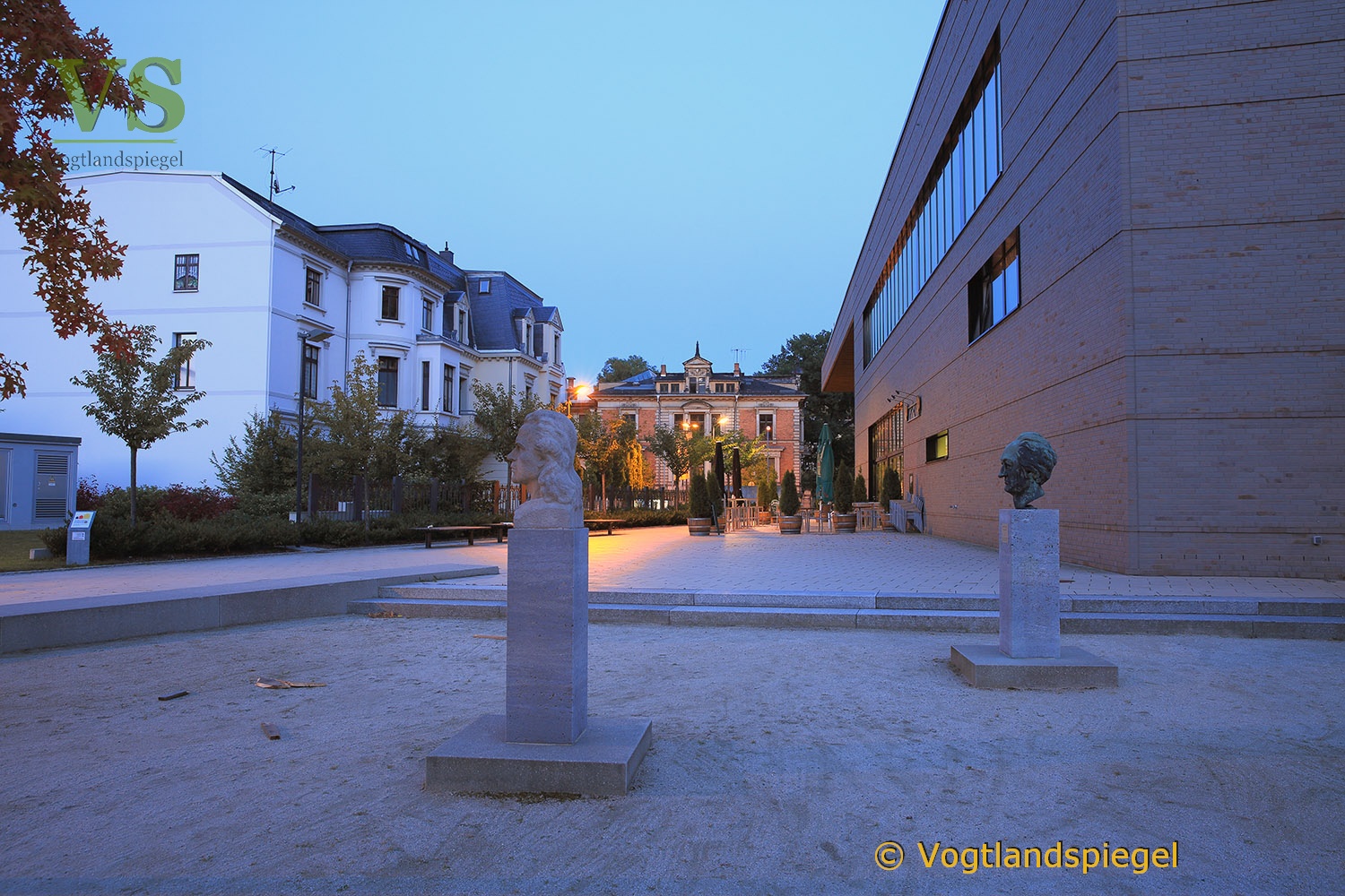 Blick über das Lapidarium im Goethepark in Außenbereich des Restaurants „Zur Bühne“