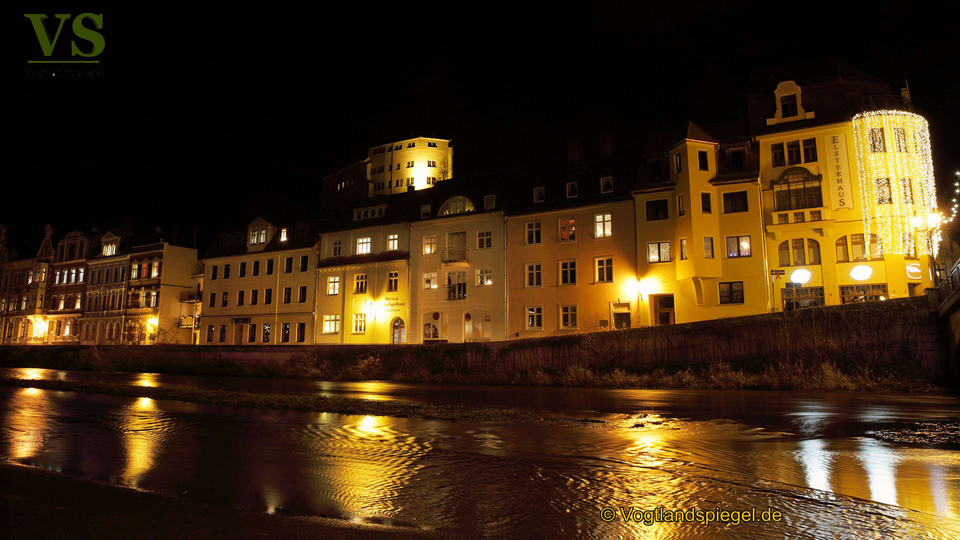 Blick über die Weiße Elster in Richtung Elstersteig. Aufnahme vom 23. Dezember 2017.