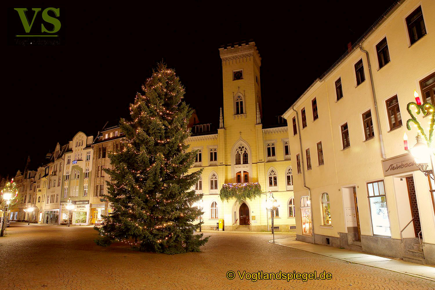 Das Greizer Rathaus mit großem Tannenbaum. Aufnahme vom 23. Dezember 2017.