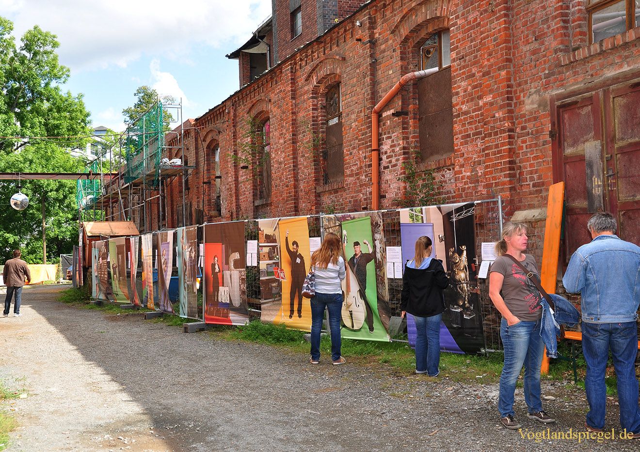 Interessiert betrachten die Besucher die Kunst.