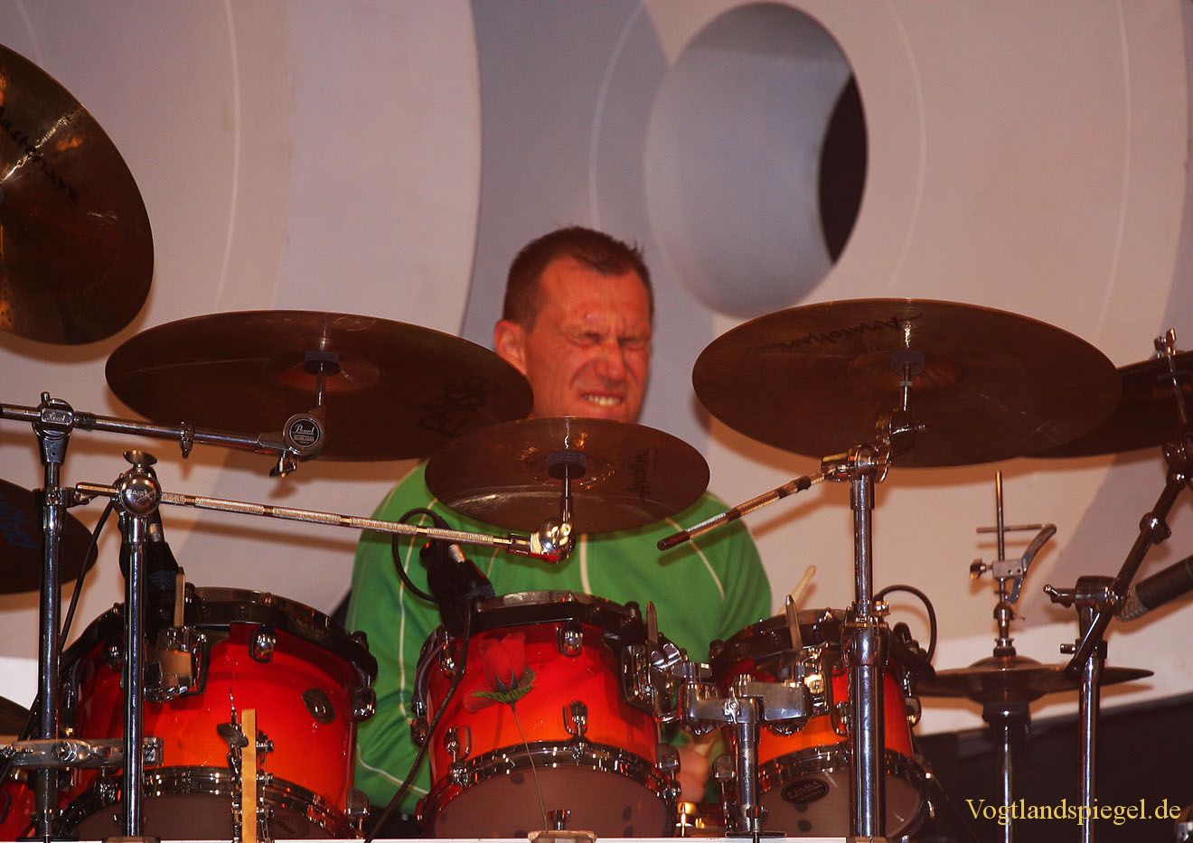 Schlagzeuger Fied von den Wellenbrechern beim Open Air in der Pappe.