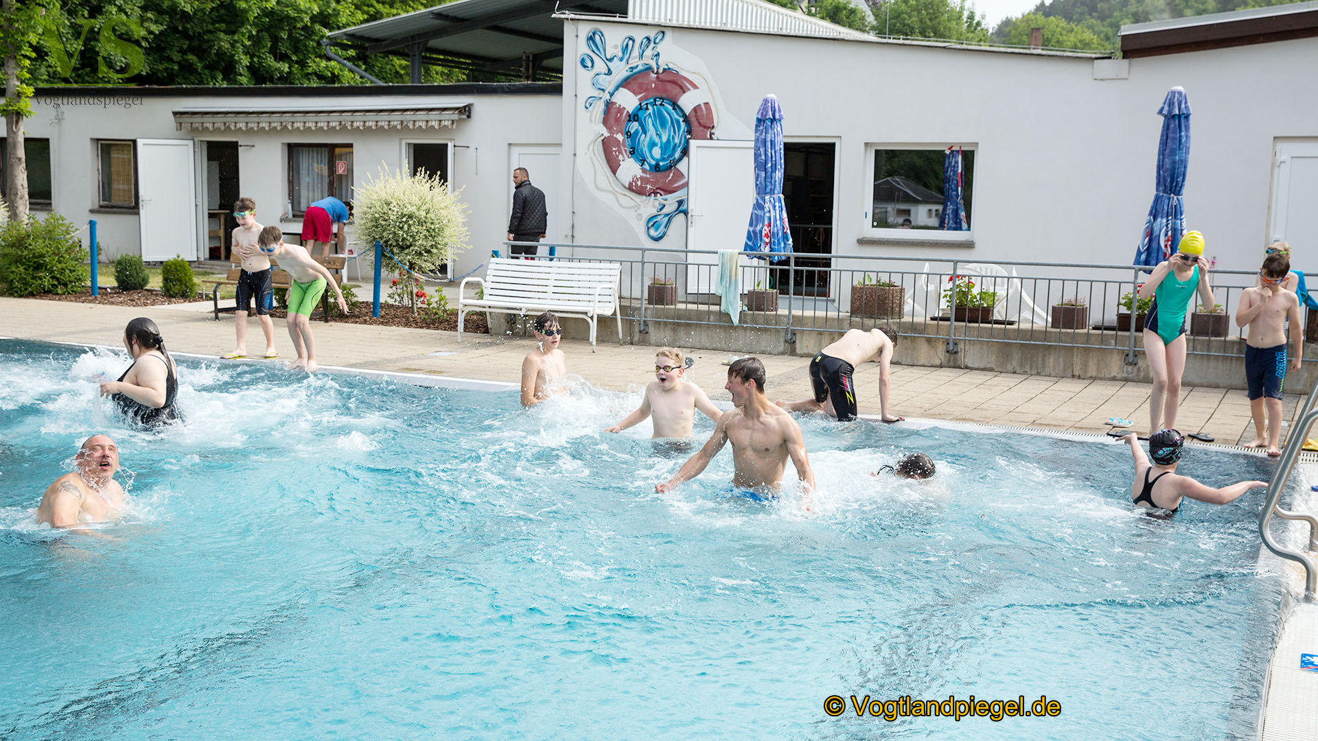 Ein kühner Sprung in die Fluten – das traditionelle Anbaden der Greizer Schwimmer