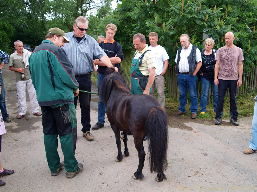 Gespräche wurden auch über die große Kaltblutschau geführt, die am 24. Juni auf dem Hanke schen Hof in Filsum an der deutsch-niederländischen Grenze unweit der Nordsee stattfand. Da waren nicht nur die Friesen dabei. Auch Ralf Naundorf hatte auf dieser Pferdeshow mit großem Erfolg seine Stute »Jamira« mit dem einjährigen Fohlen »Julie« vorgestellt. Die Gelegenheit wurde genutzt, um »Jamira« von »Jumper«, einem Bild von Rassehengst, erneut decken zu lassen.