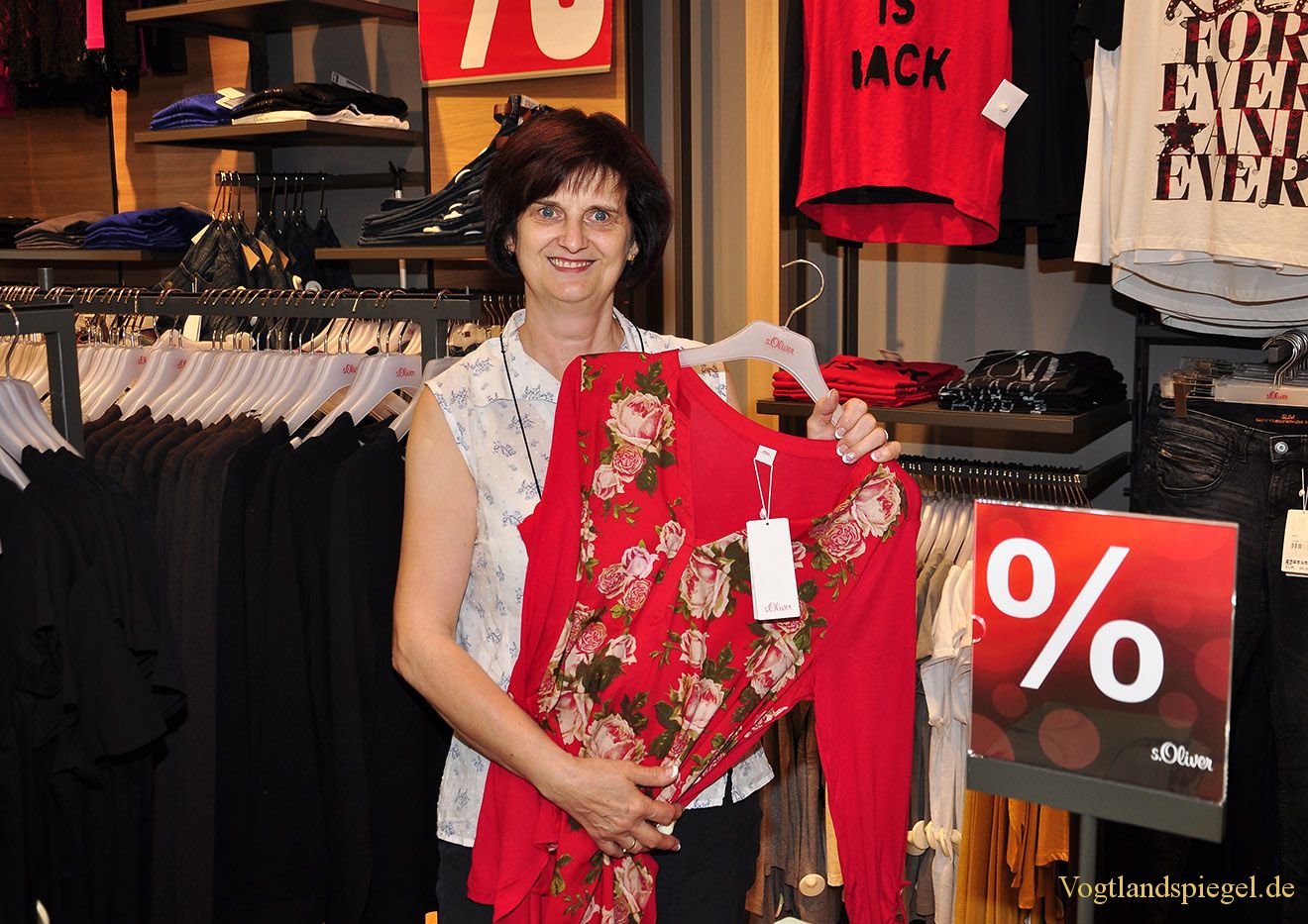 Filialleiterin Regina Molder präsentiert ein neues Stück der Herbstkollektion.