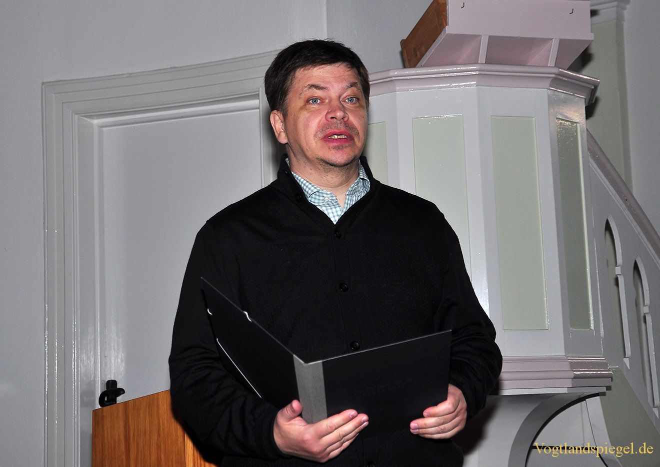Wjatscheslaw begrüßt die Gäste des Konzertes in deutscher Sprache.