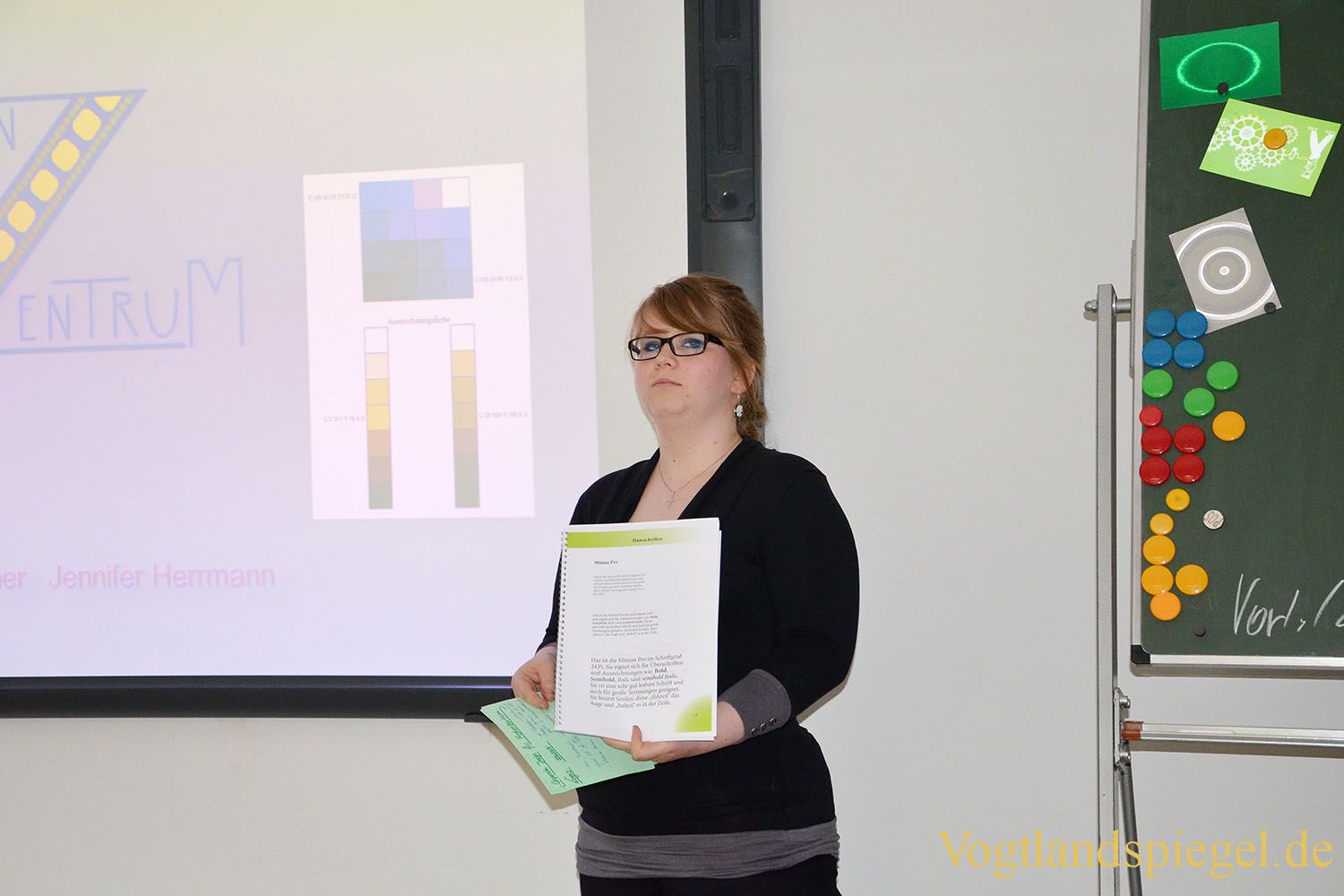 Lisa Badstübner präsentiert die Logoentwicklung.