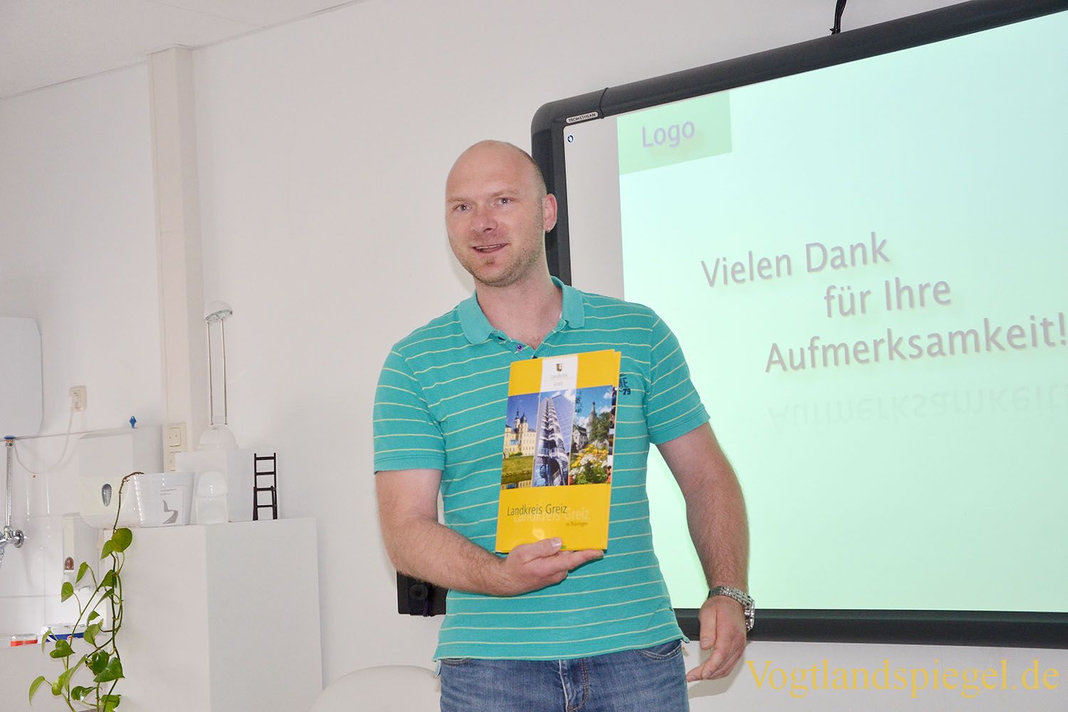 Für die Berufsschüler hat Michael Jesinski noch eine Mappe und einen Stick mitgebracht.
