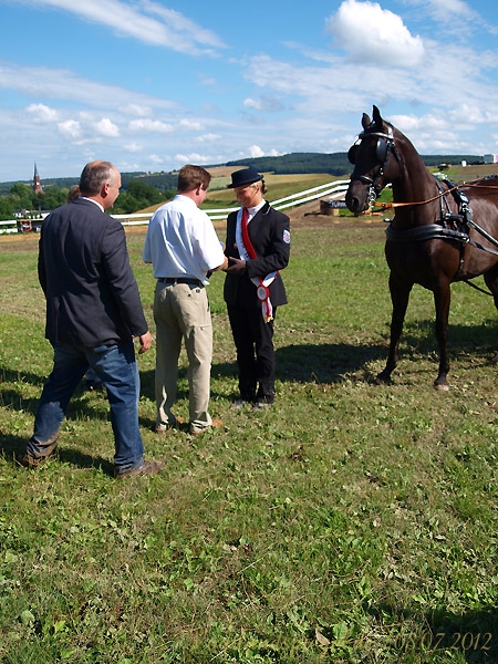 Damit wiederholte sie ihren Erfolg aus dem Vorjahr in dieser Klasse und sammelte den insgesamt 21. Titel eines Thüringenmeisters in ihrer Laufbahn ein. Interessant, daß es in diesem Jahr schon drei sind, der Thüringenmeister 2012 im Einspänner Großpferd mit FST Arielle, der Thüringenmeister 2012 im Zweispänner Großpferd mit FST Arielle sowie Interflug und der Thüringenmeister 2012 Einspänner Fahrpony mit Nobiles.