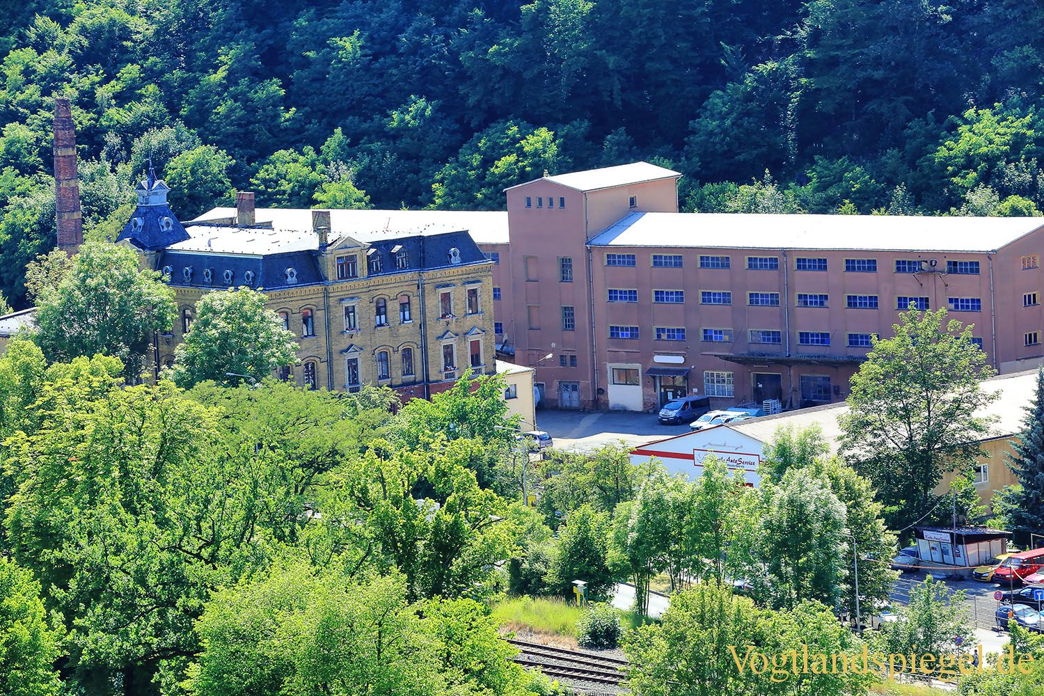 Blick aus der luftigen Höhe des Krankorbs auf die Stadt Greiz