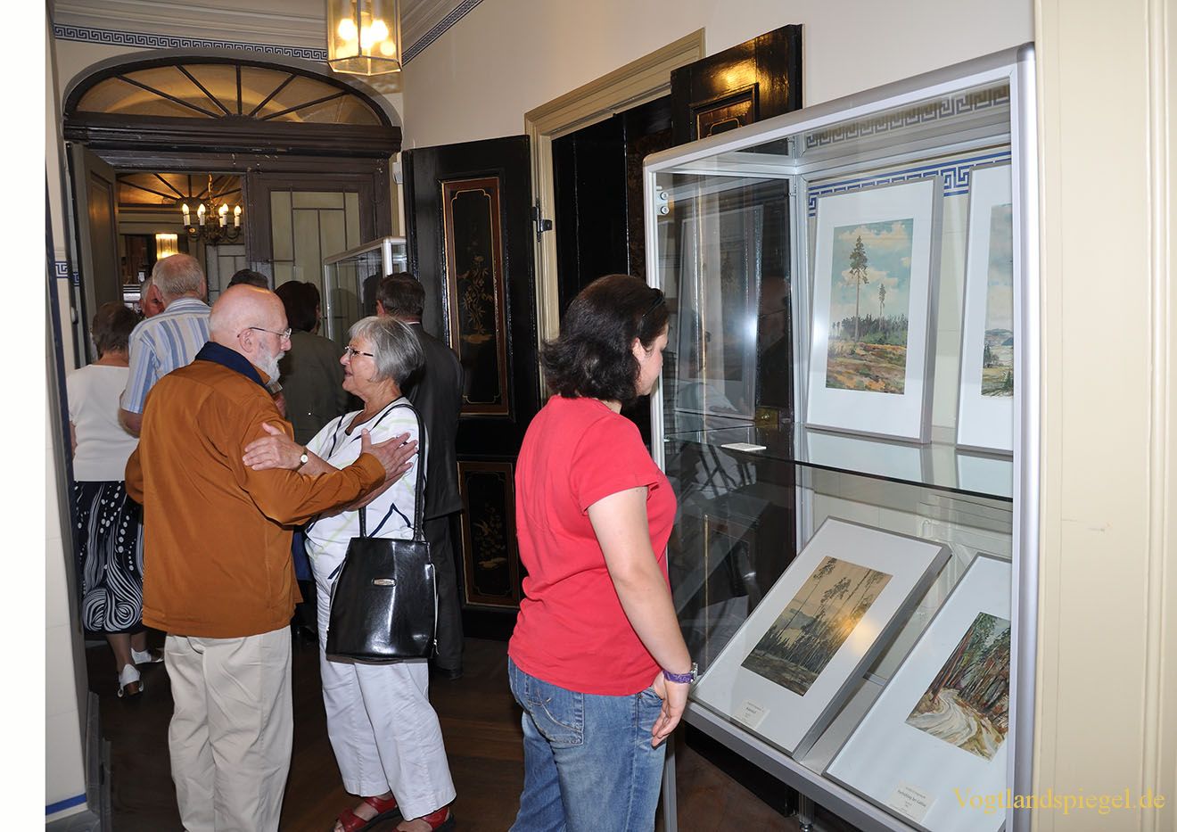 Interessiert betrachten die Gäste die Bilder der Ausstellung „“Blick ins Vogtland“ im Museum des Unteren Schlosses Greiz.