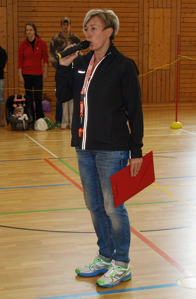 Ines Wartenberg begrüßt alle Teilnehmer des Bummi-Sportfestes in der Greizer Kurt-Rödel-Halle.