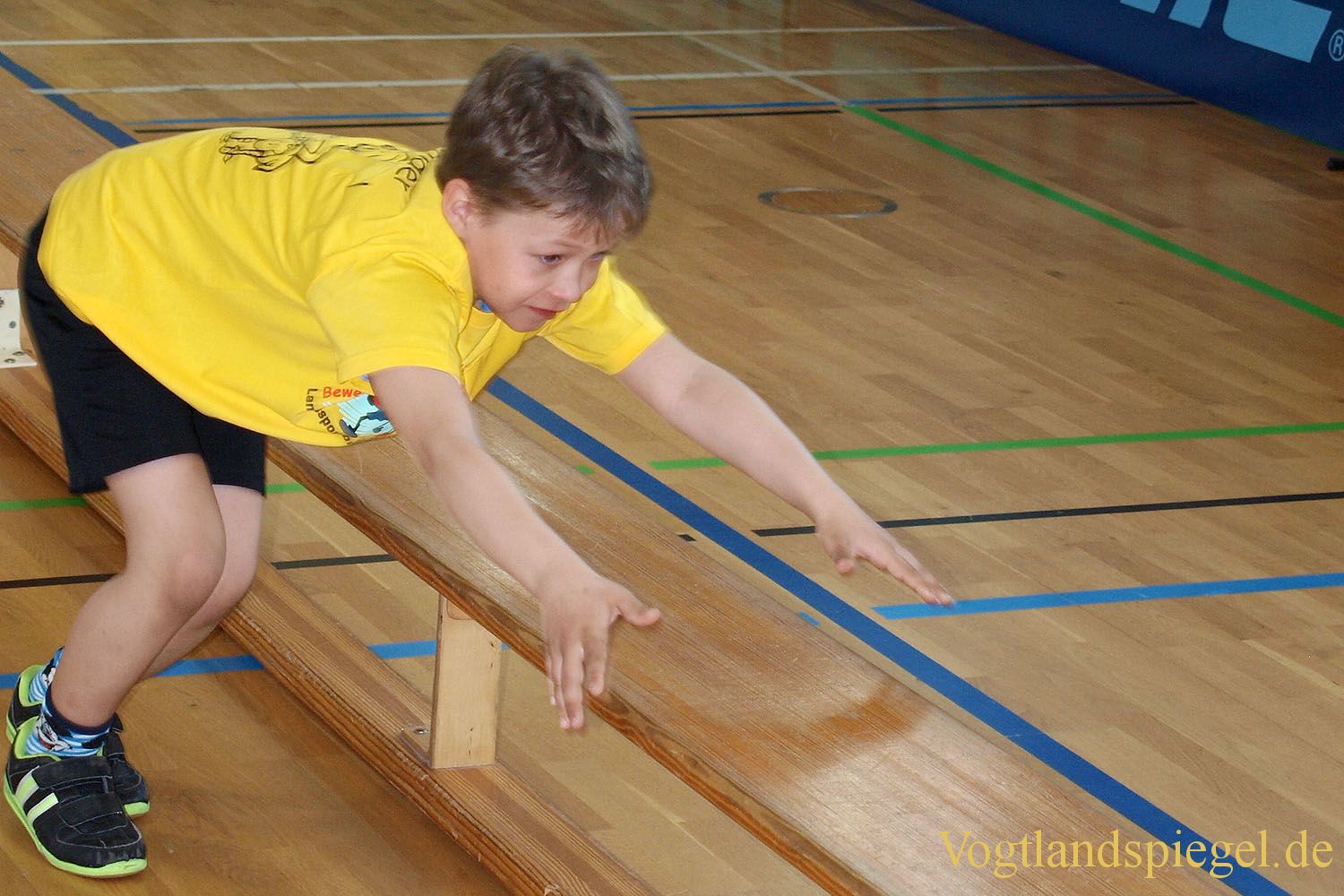 Auf der Bank entlang ziehen gehörte auch zum Wettkampf.