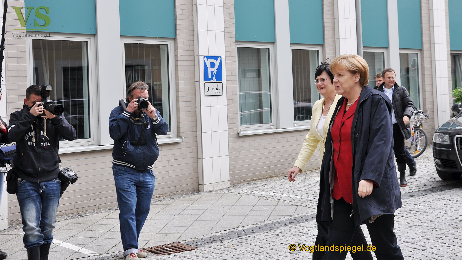 Zu einem spontanen Besuch in der Hochwasserregion kam am Dienstag Bundeskanzlerin Angela Merkel nach Greiz – bei der Ankunft im Landratsamt Greiz