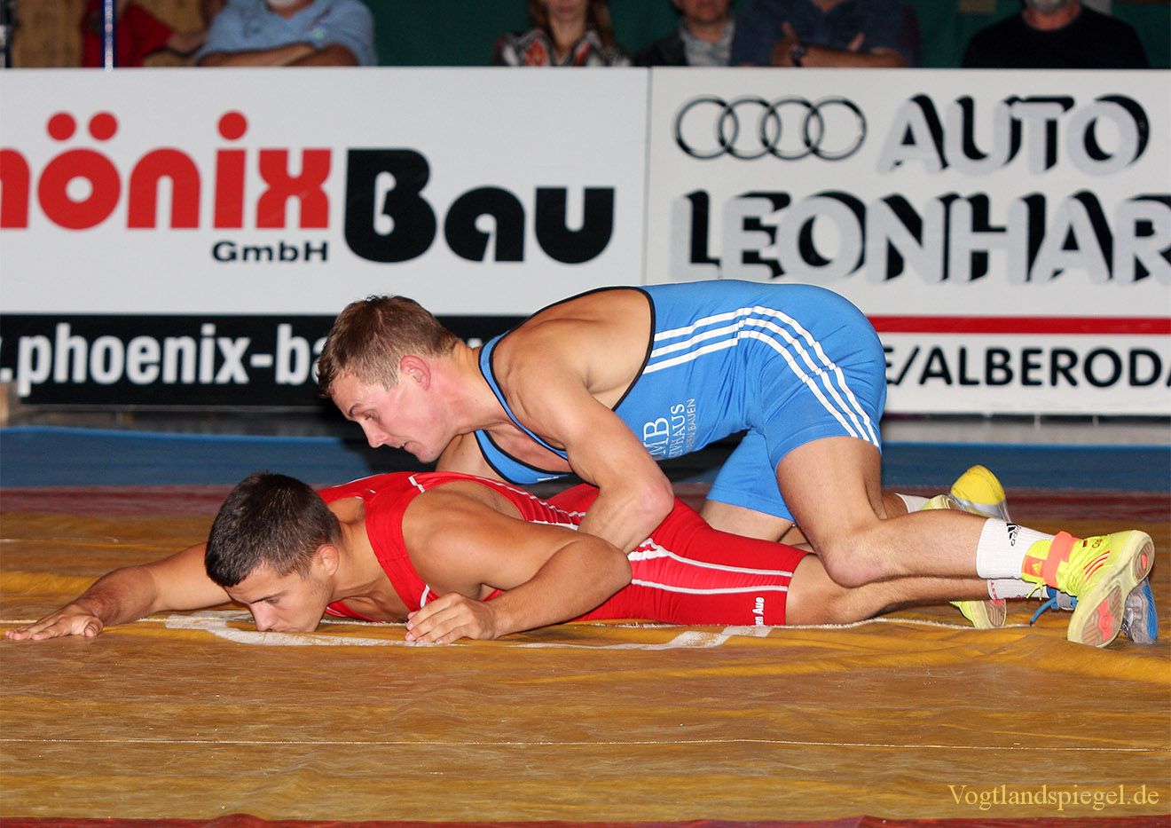 61kg Gr.-röm.: Bence Kovacs, FC Erzgebirge Aue gegen Florian Crusius (blaues Trikot), RSV Rotation Greiz 0:1-PS 0:2-06:00